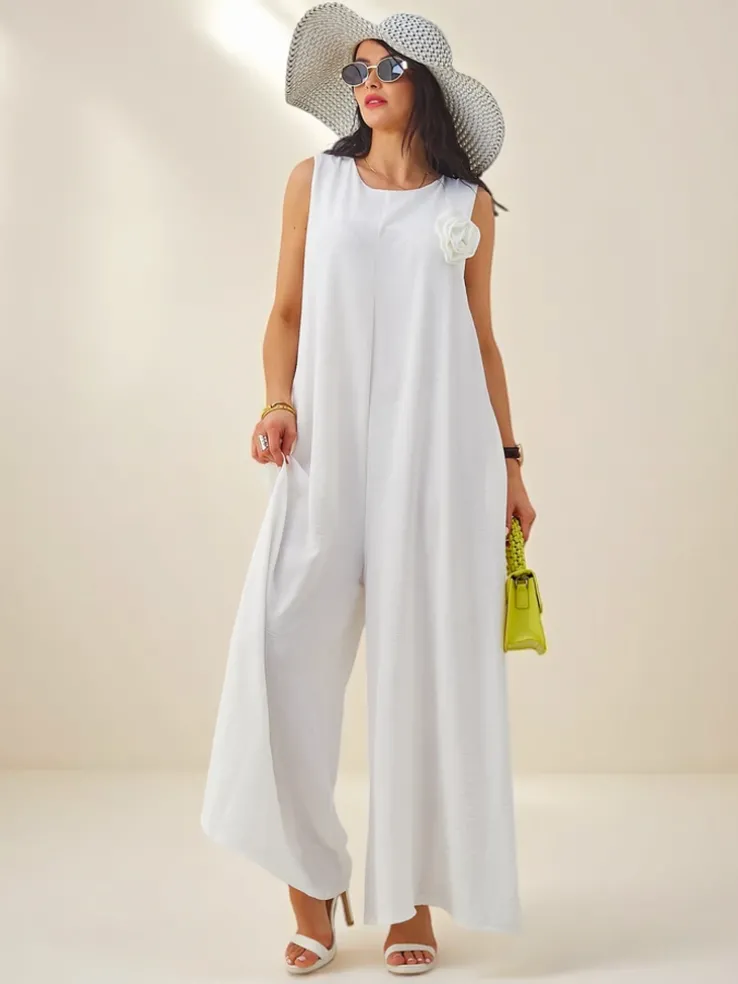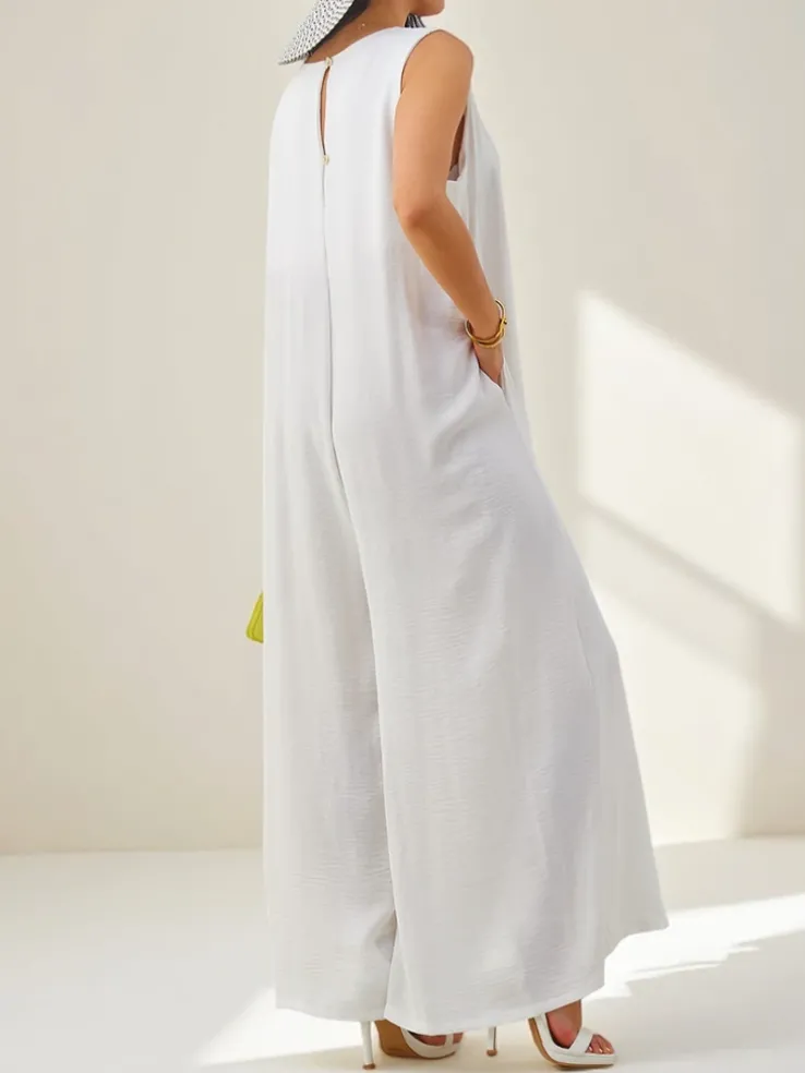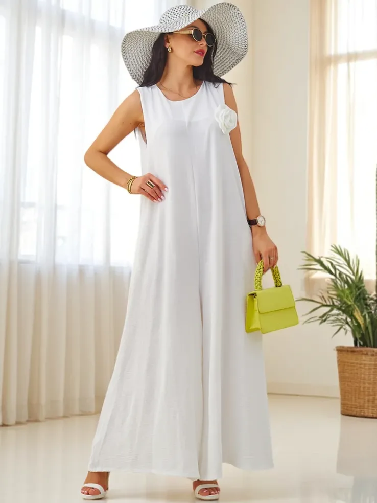 Artemisia Eleganza – biały damski kombinezon maxi z wiskozy na ramiączkach