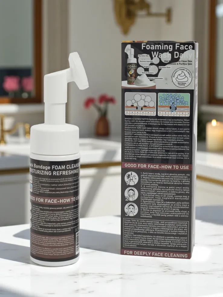 - Oczyszczająca pianka do twarzy z szczoteczką delikatnie usuwa zanieczyszczenia, jednocześnie nawilżając i odświeżając skórę dzięki formule Black Bandage. Skóra staje się gładka, promienna i pełna energii.