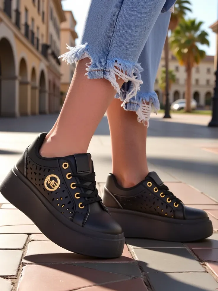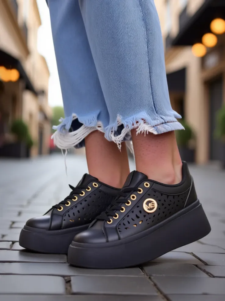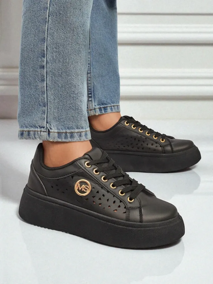 Aurelia Nero – Czarna platforma Royalfashion z eko skóry, model LH201-8