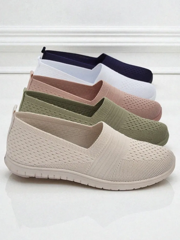 Beżowe damskie slip-ony Callista – lekkie buty tkaninowe na płaskiej podeszwie