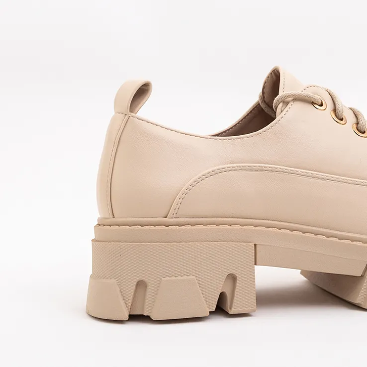 - Wyjątkowe półbuty damskie w stylu oxfordków, wykonane ze skóry ekologicznej. Cholewka sznurowana, zdobiona złotym elementem. Wkładka również z eko-skóry, podeszwa z tworzywa gumowego. Model jak najbardziej będzie się sprawdzał z eleganckimi stylizacjami!