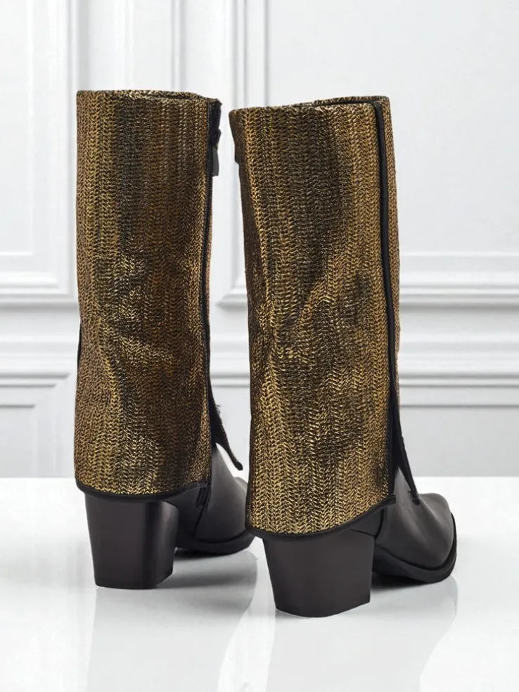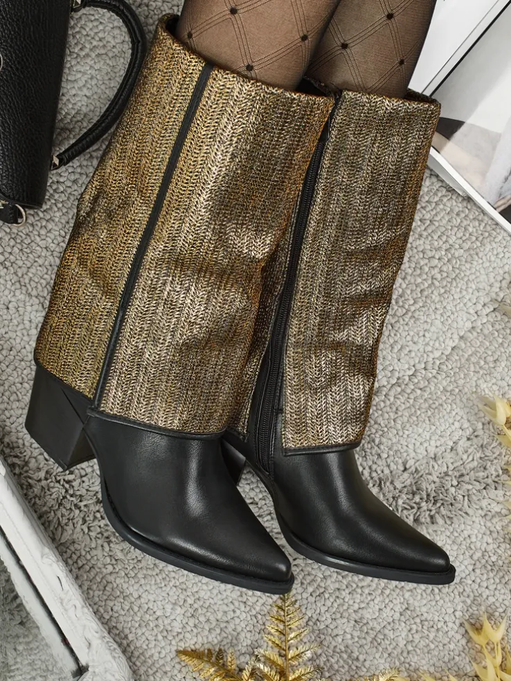 - Wygodne botki na słupku, wykonane z eko skóry. Model zapinany na zamek. Posiada ocieplenie w formie futerka. Ozdobna cholewka i nosek w szpic dodaje im uroku!