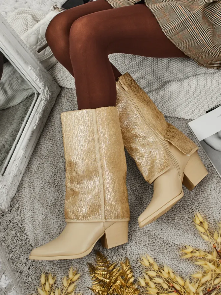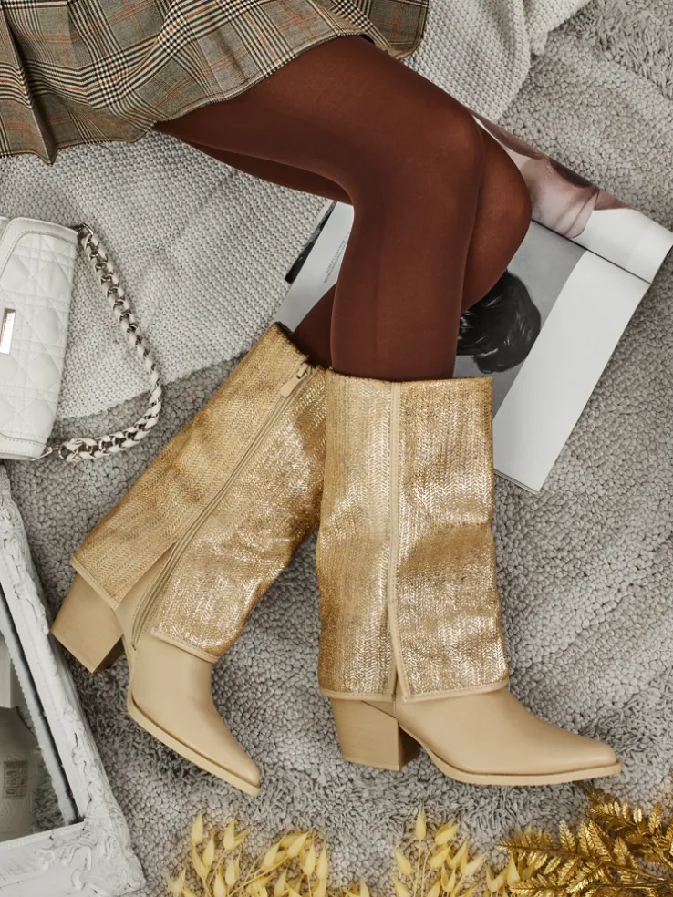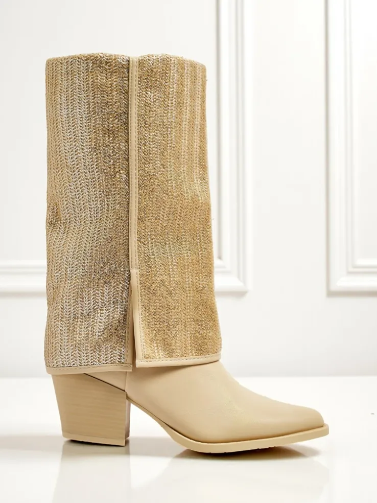 - Wygodne botki na słupku, wykonane z eko skóry. Model zapinany na zamek. Posiada ocieplenie w formie futerka. Ozdobna cholewka i nosek w szpic dodaje im uroku!