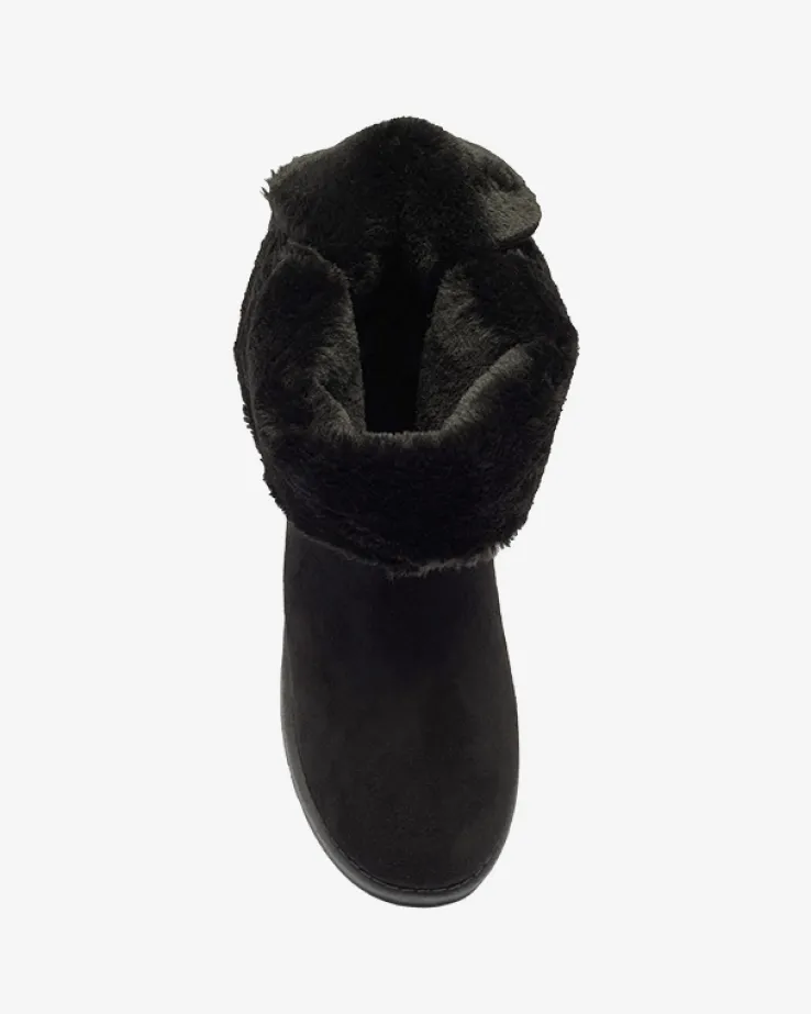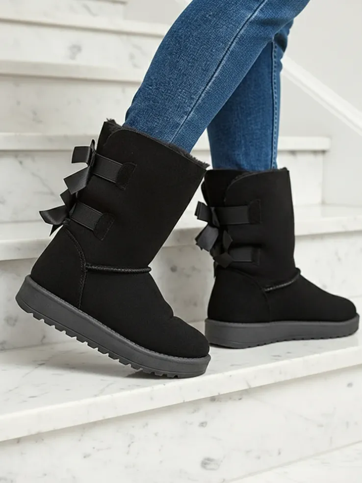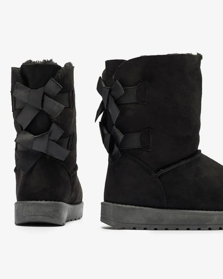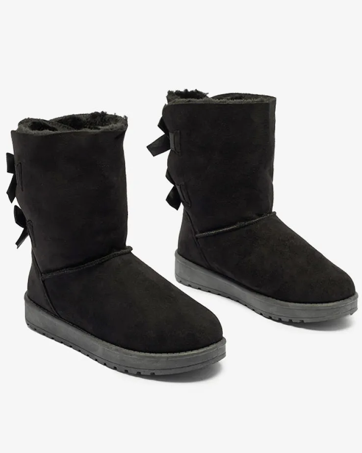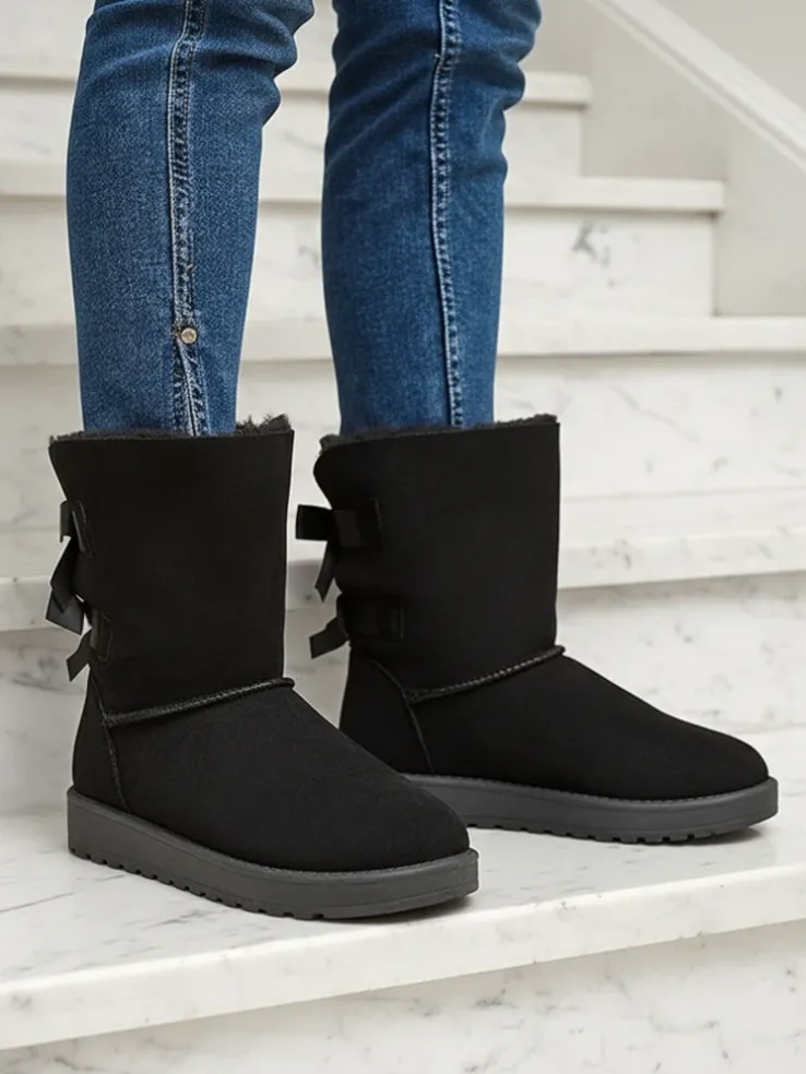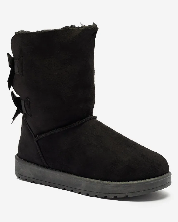- Ponadczasowe damskie wsuwane śniegowce, wykonane ze skóry ekologicznej zamszowej. Z tyłu model jest zdobiony kokardkami, środek wyłożony miękkim futerkiem. Doskonale podkreślą każdą Twoją stylizację! CZARNE BUTY ZIMOWE OCIEPLANE ŚNIEGOWCE MASSAP