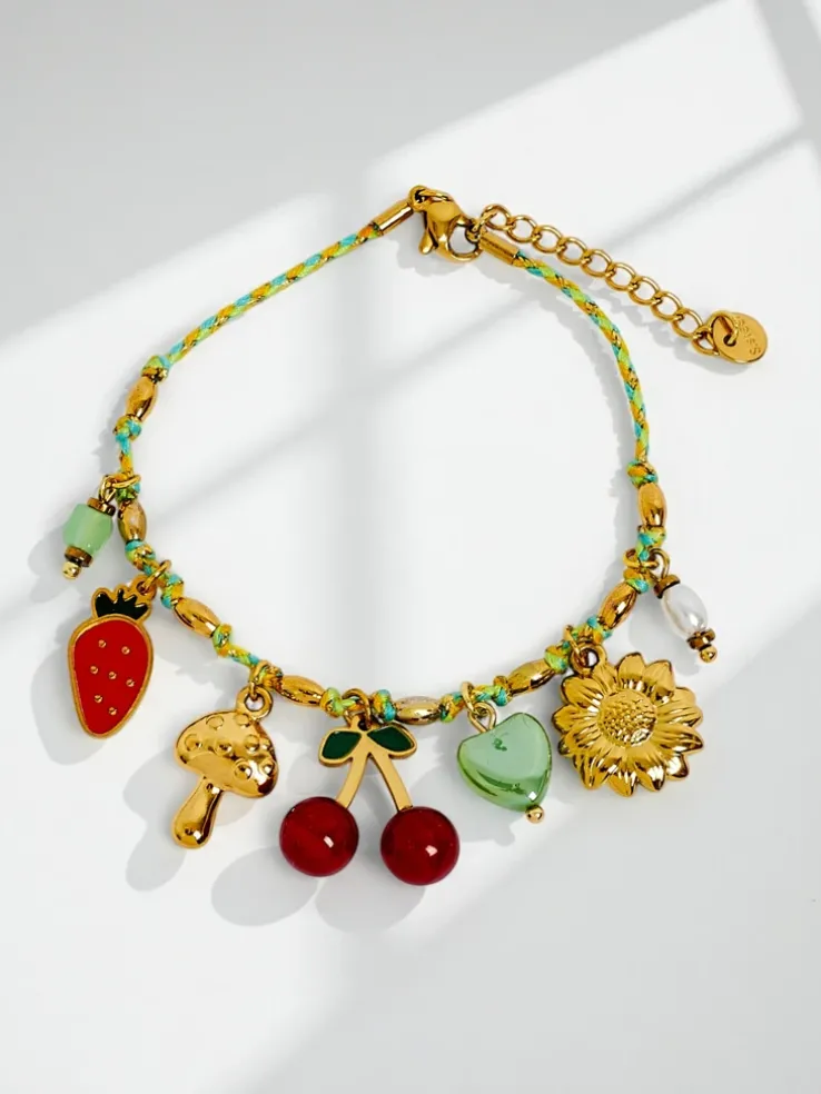 - Bransoletka Armonia Flora z charmsami: truskawka, wiśnia, słonecznik. Idealny, modny dodatek na co dzień.