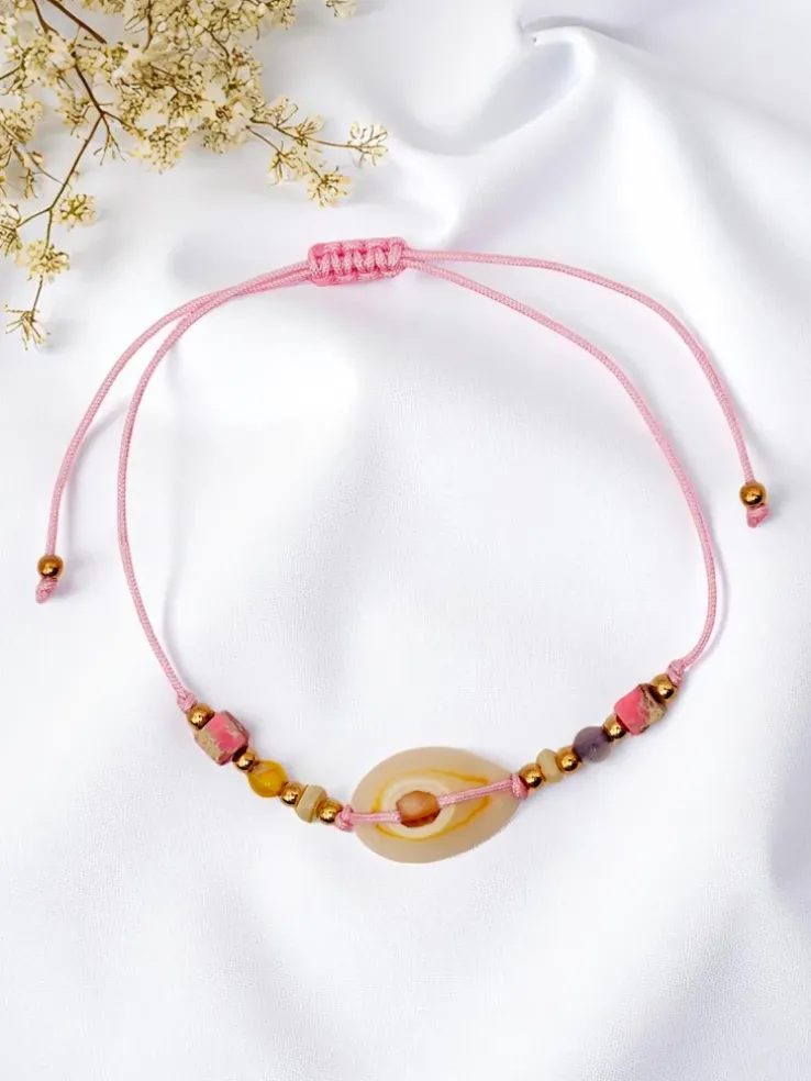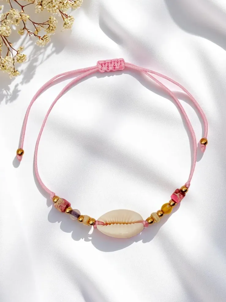 - Delikatna bransoletka na sznurku z regulacją, ozdobiona urokliwą muszelką. Lekka i subtelna, idealna na letnie dni, dodaje nadmorskiego uroku każdej stylizacji. Doskonała na wakacyjne chwile, plażowe przygody lub codzienne akcenty.