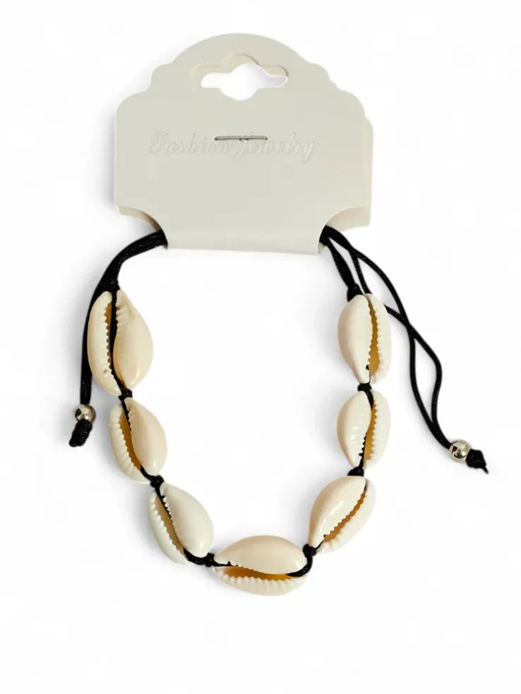 - Letnia bransoletka z naturalnymi muszelkami i wygodną regulacją. Subtelna, lekka i pełna wakacyjnego uroku — idealna na plażę i na co dzień, dla miłośniczek morskich klimatów.