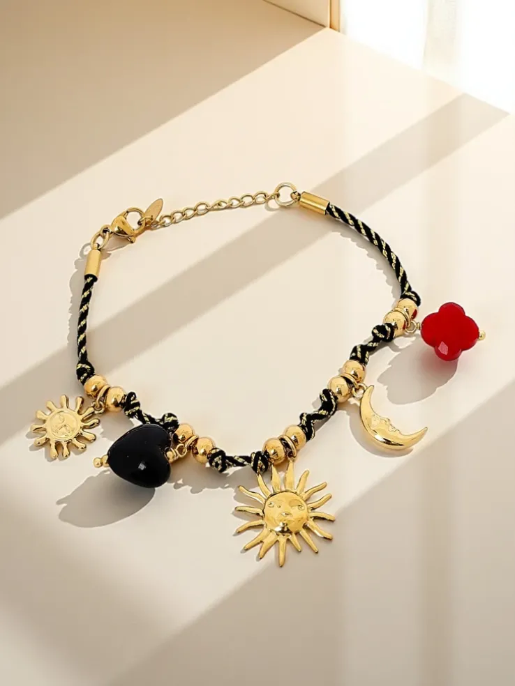 - Bransoletka Solare Apollonia z zawieszkami: słońce, księżyc, serce – wyjątkowa biżuteria modowa.