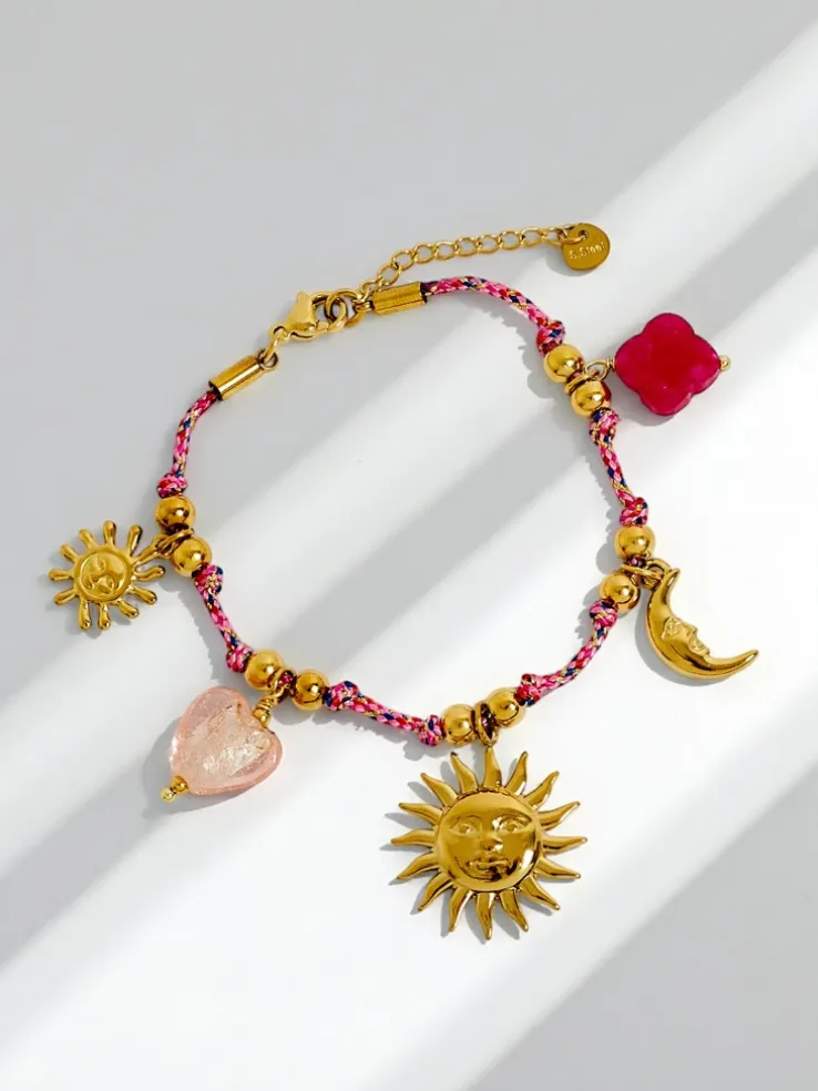 - Złota Bransoletka Solaria Lunae z charmsami słońce i księżyc – unikalna biżuteria boho.