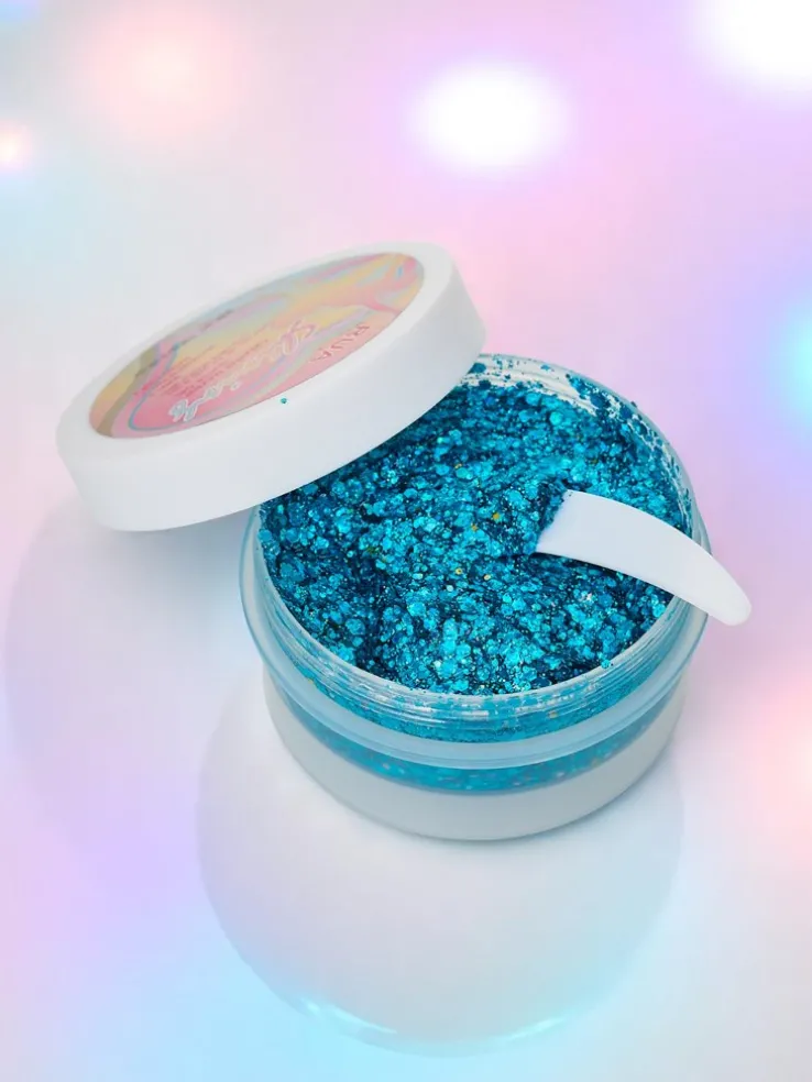 - Brokatowy żel do zdobienia twarzy – idealny na festiwale i imprezy. Łatwy w aplikacji, szybko schnie i długo się utrzymuje. Dodaje blasku i wyjątkowego efektu glamour.