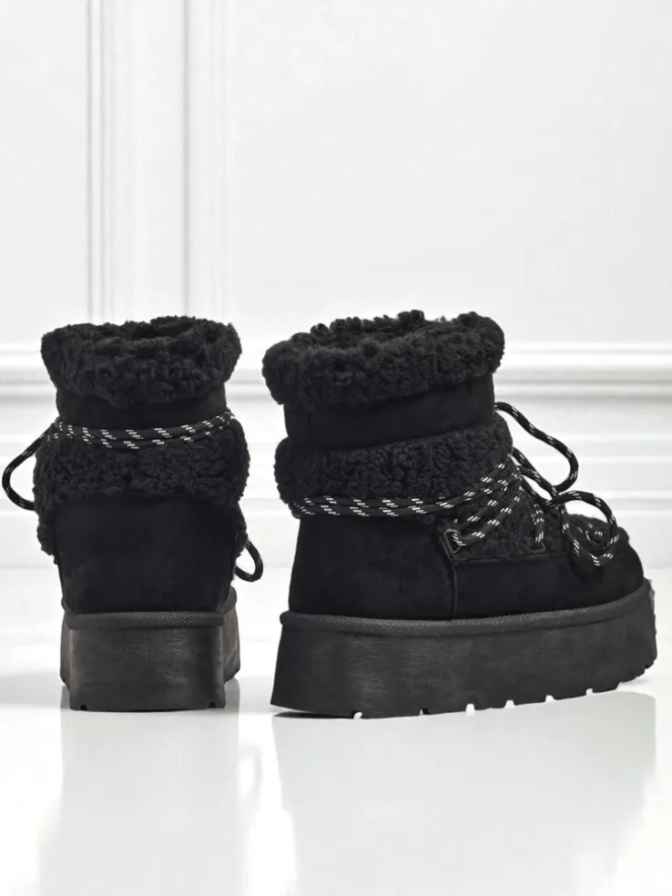 - Świetne damskie zimowe buty typu śniegowce na grubszej podeszwie. Cholewka wykonana jest ze skóry ekologicznej zamszowej oraz z materiau a’la kożuszek, środek ocieplony futerkiem. Idealna baza na zimę!