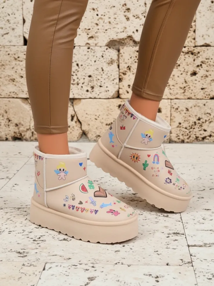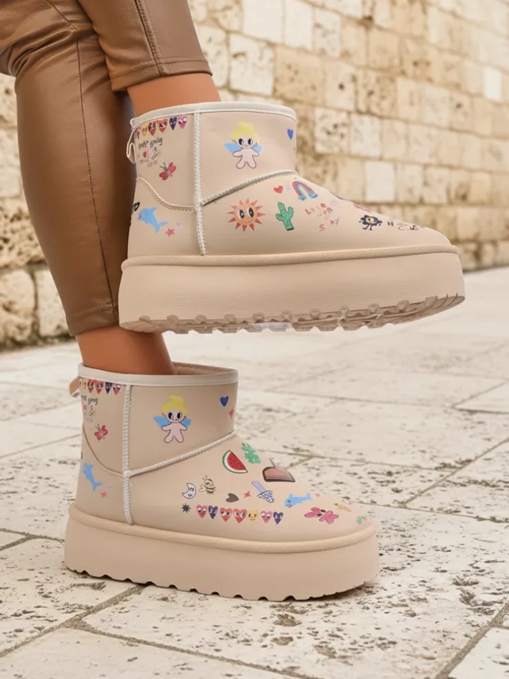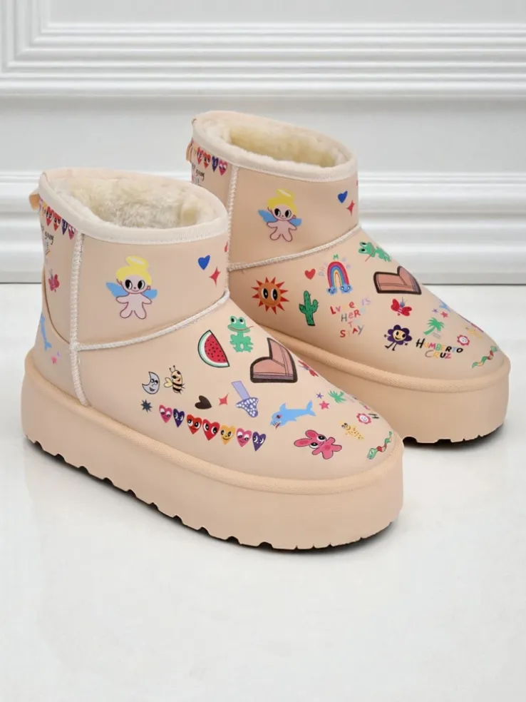 - Buty Callisto Angelico na platformie, ciepłe, ozdobione unikalnymi rysunkami – hit streetwear.
