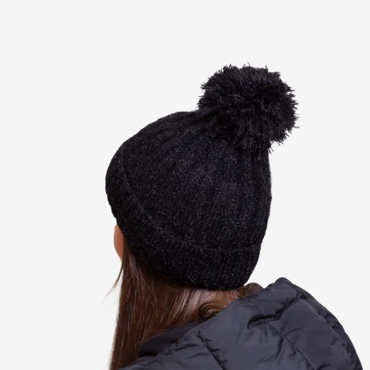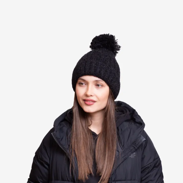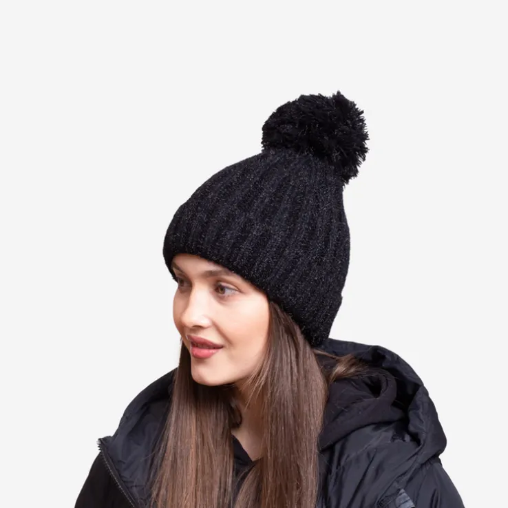 Czarna damska ocieplana błyszcząca czapka z pomponem – Akcesoria