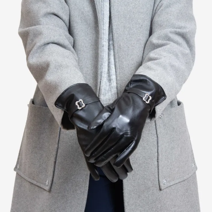 - Stylowe damskie rękawiczki wykonane ze skóry ekologicznej. Para jest ocieplana miękkim, delikatnym futerkiem. Idealna baza do wielu jesienno-zimowych looków!