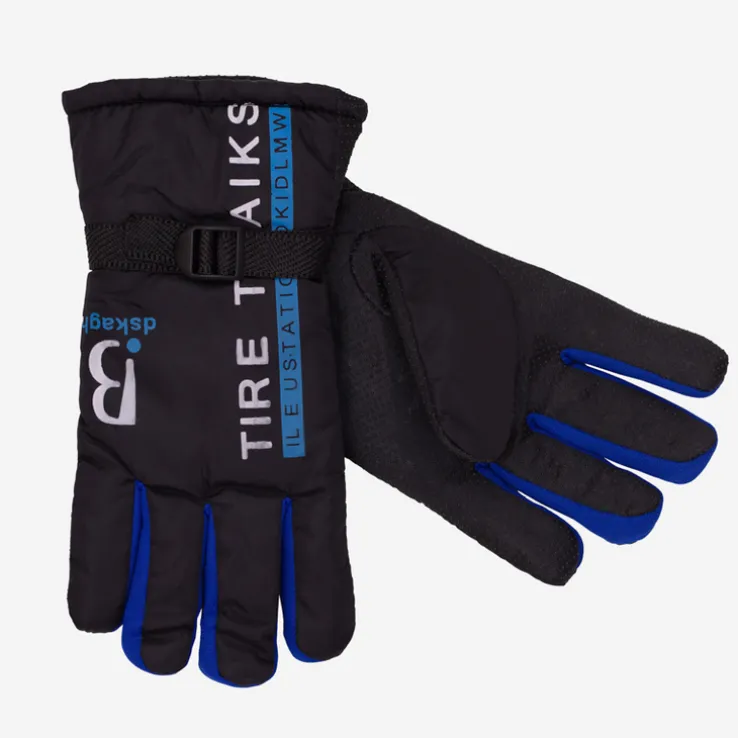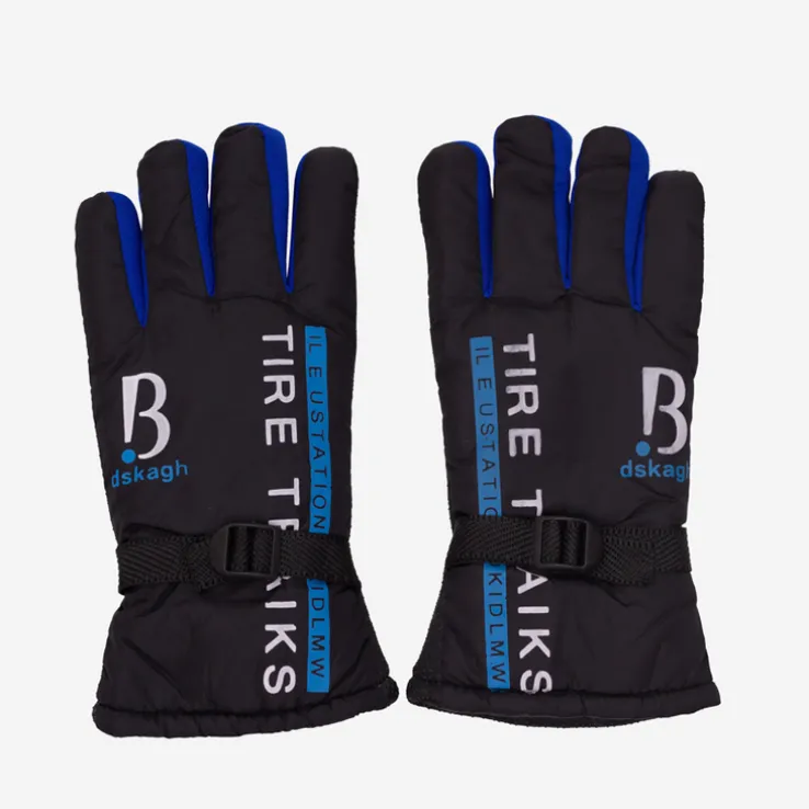 - Stylowe rękawice męskie zdobione napisami oraz kolorowymi wstawkamii. Środek ocieplony futrzaną podszewką, wewnętrzna strona wykończona gumowymi kropeczkami. Model posiada paseczek z możliwością regulacji szerokości w nadgarstku.