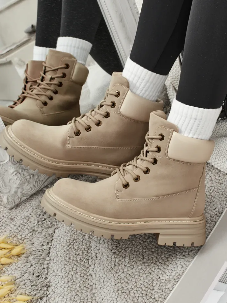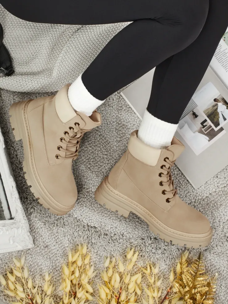- Damskie trekkingowe trapery ze sznurowaną cholewką. Materiał wykonania to skóra ekologiczna. W środku wkładka ze skóry ekologicznej. Idealne na zimowy czas!