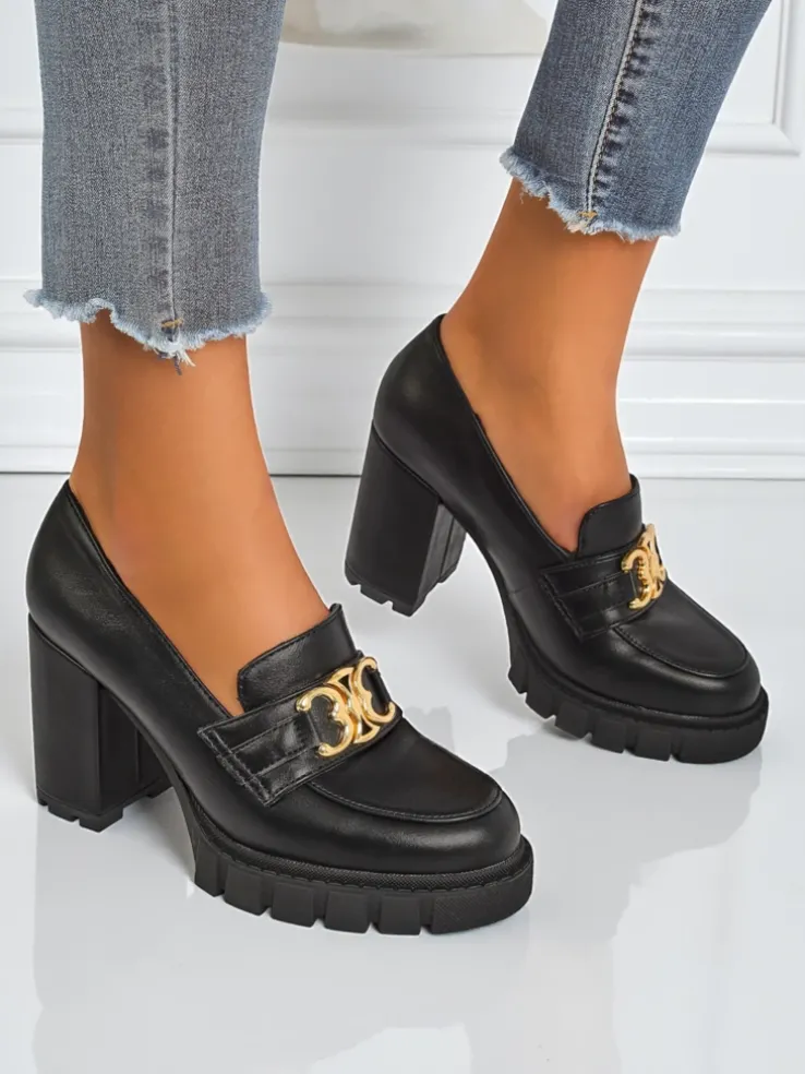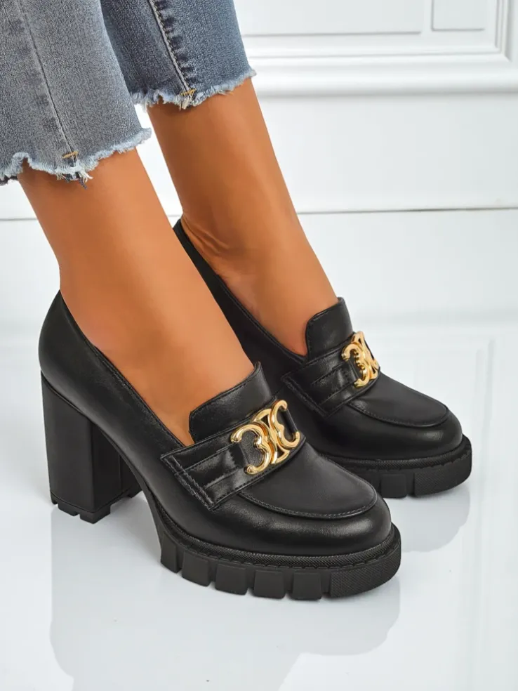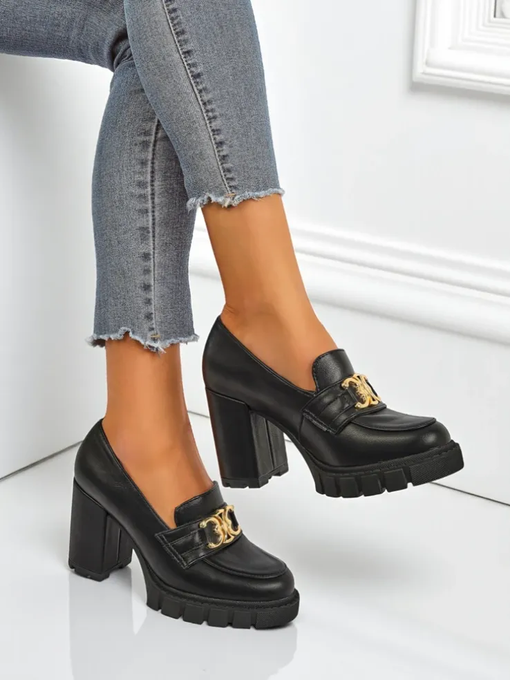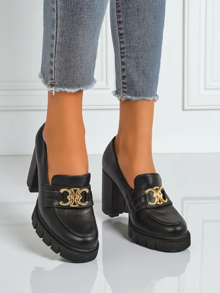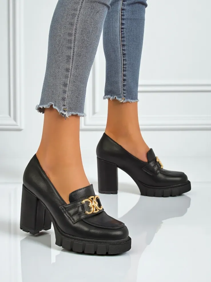 - Wyjątkowe damskie mokasyny na słupku. Klasyczny model wykonany ze skóry ekologicznej oraz wkładki ze skóry ekologicznej. Model posiada subtelną ozdobę. Idealna baza na co dzień!