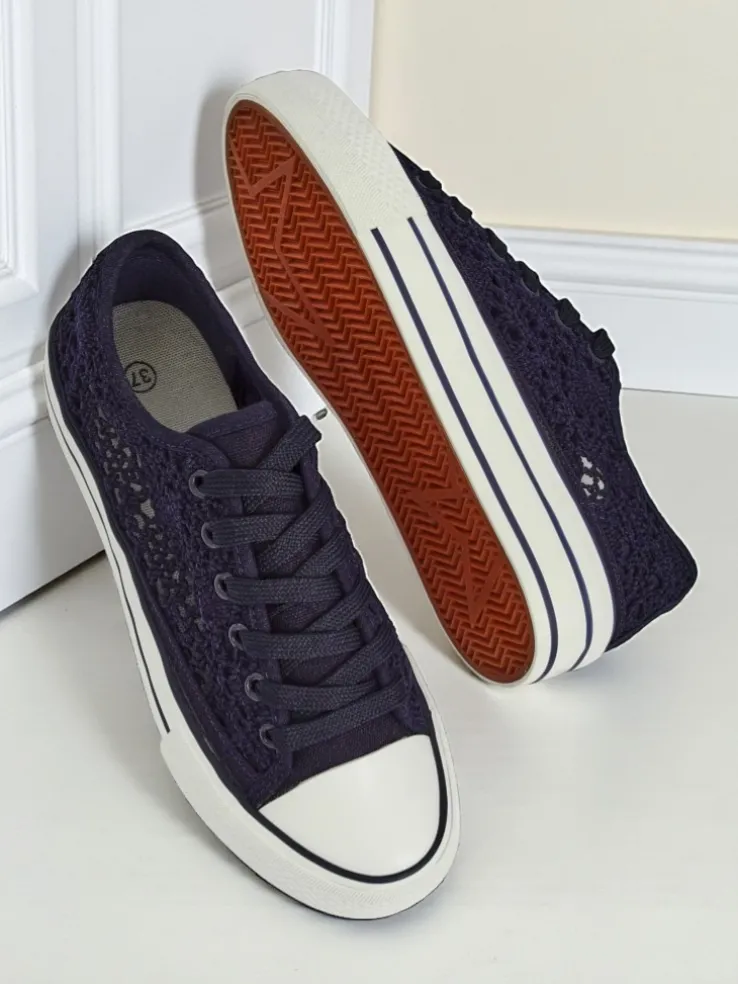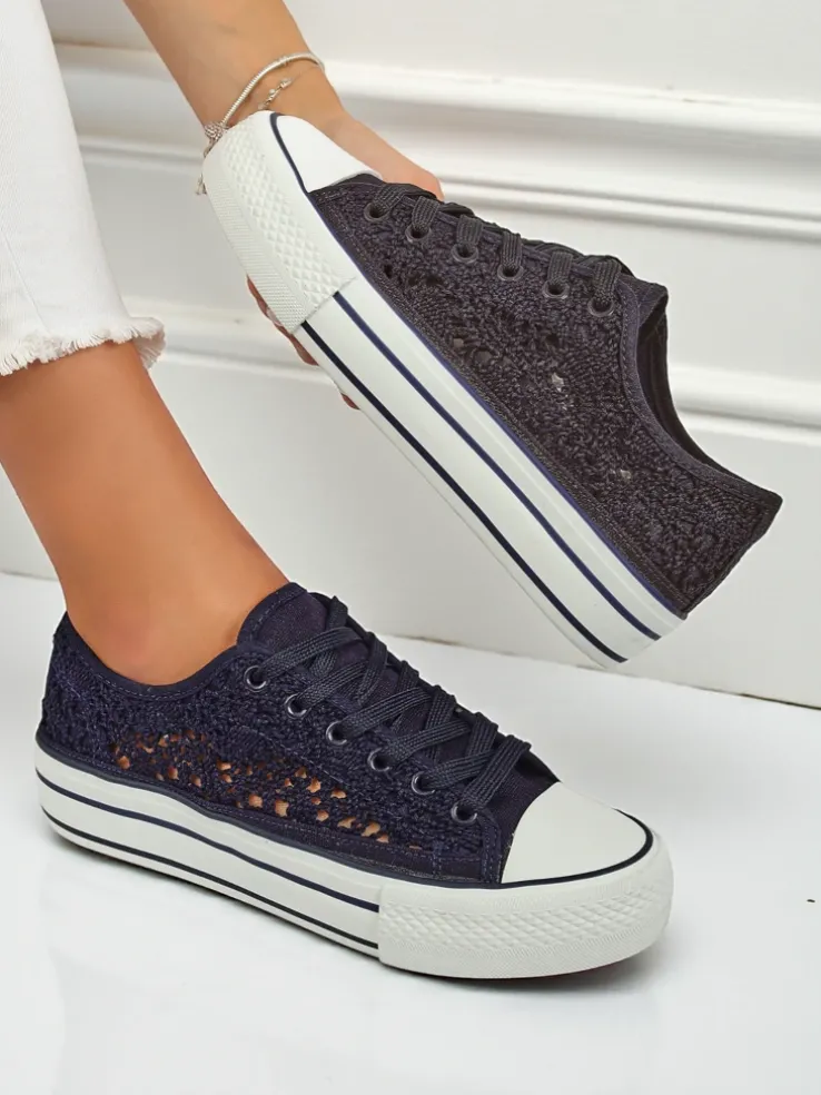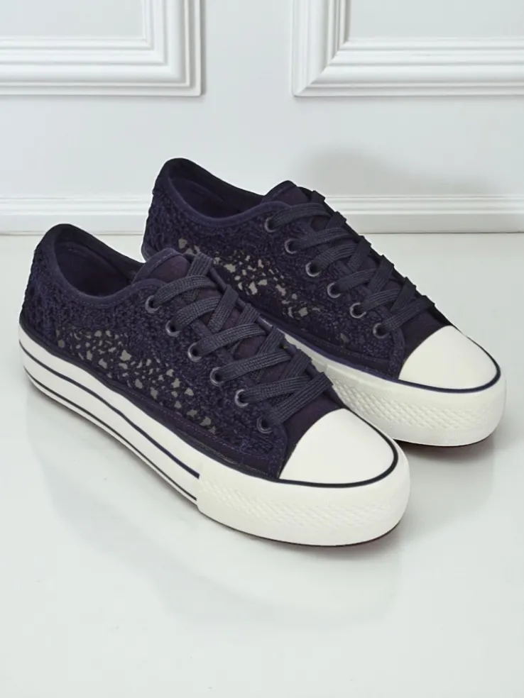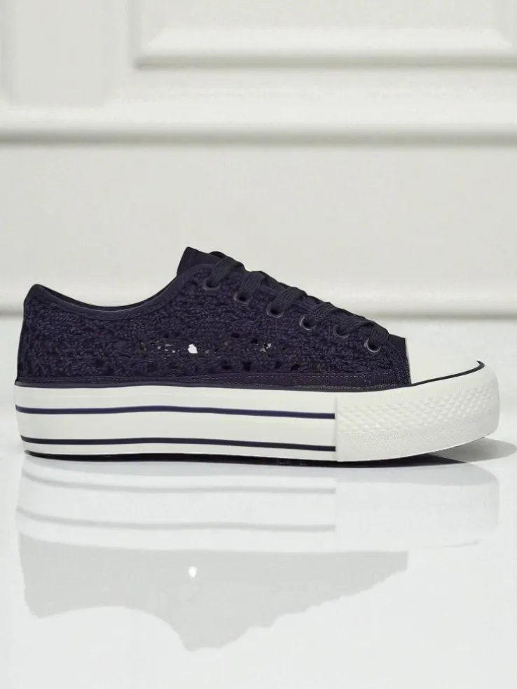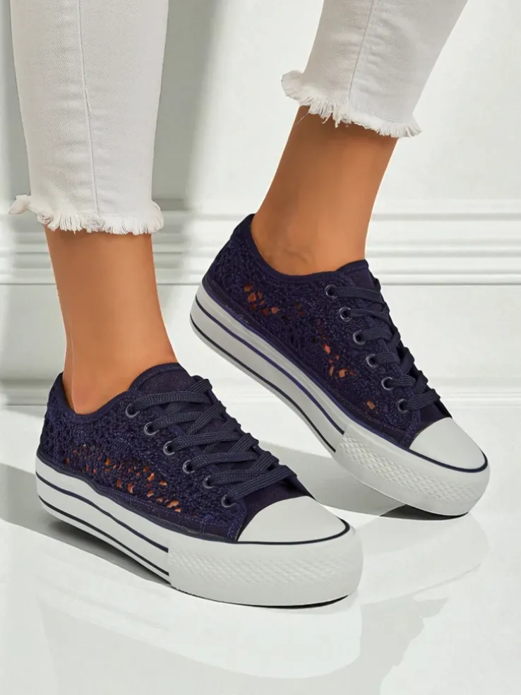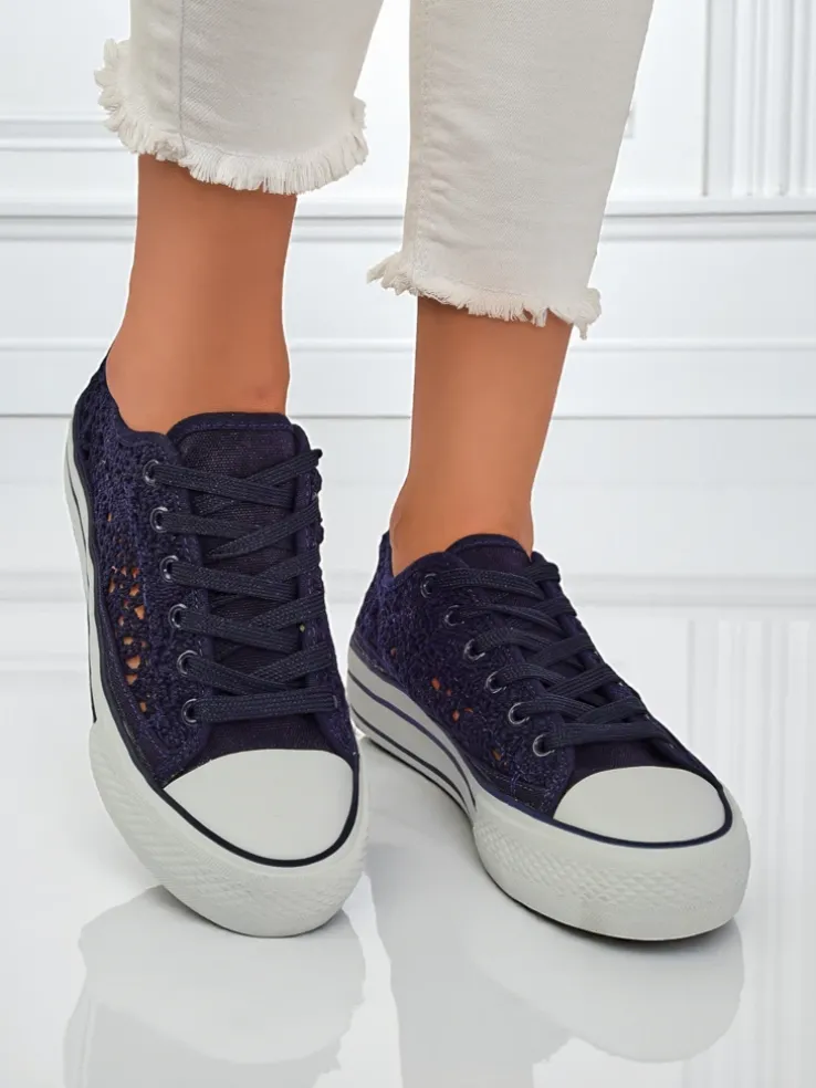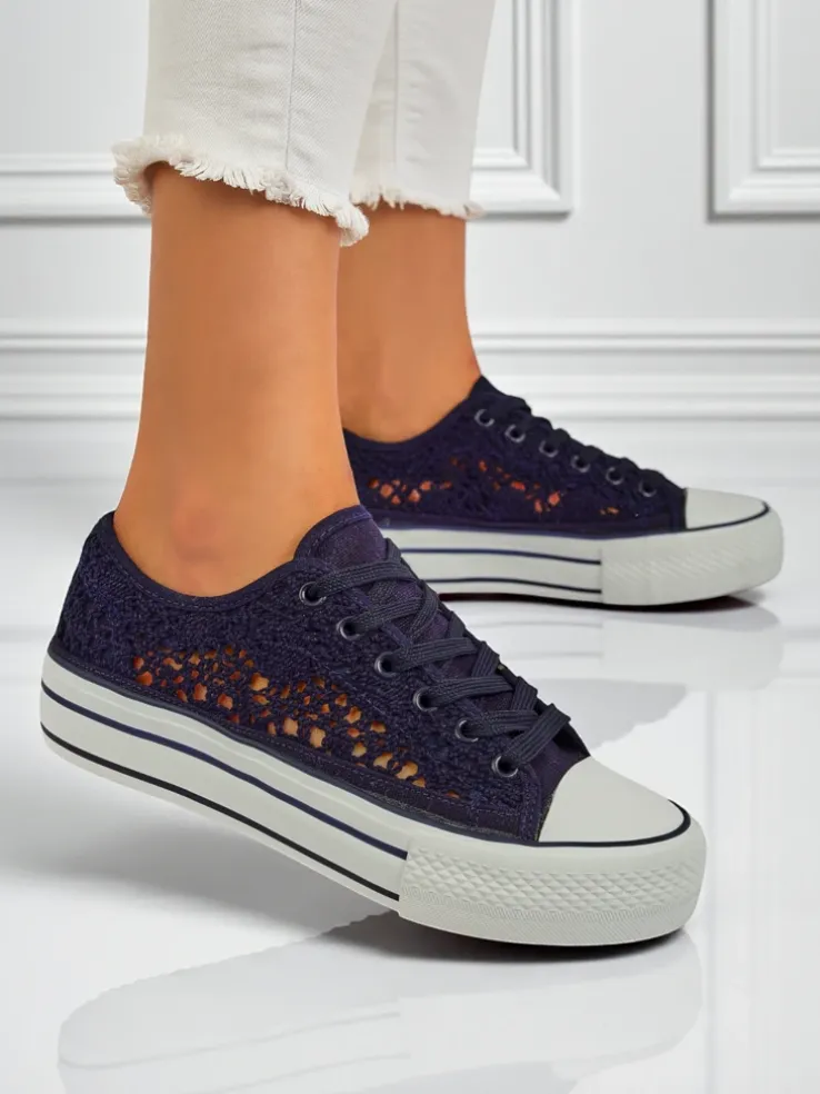 - Damskie buty na płaskiej podeszwie. Para w stylu casual jest wykonana z materiału tkaninowego z ażurowym wykończeniem, wkładka tkaninowa. Model posiada ozdobny haft. Idealne dla tych, którzy cenią komfort!