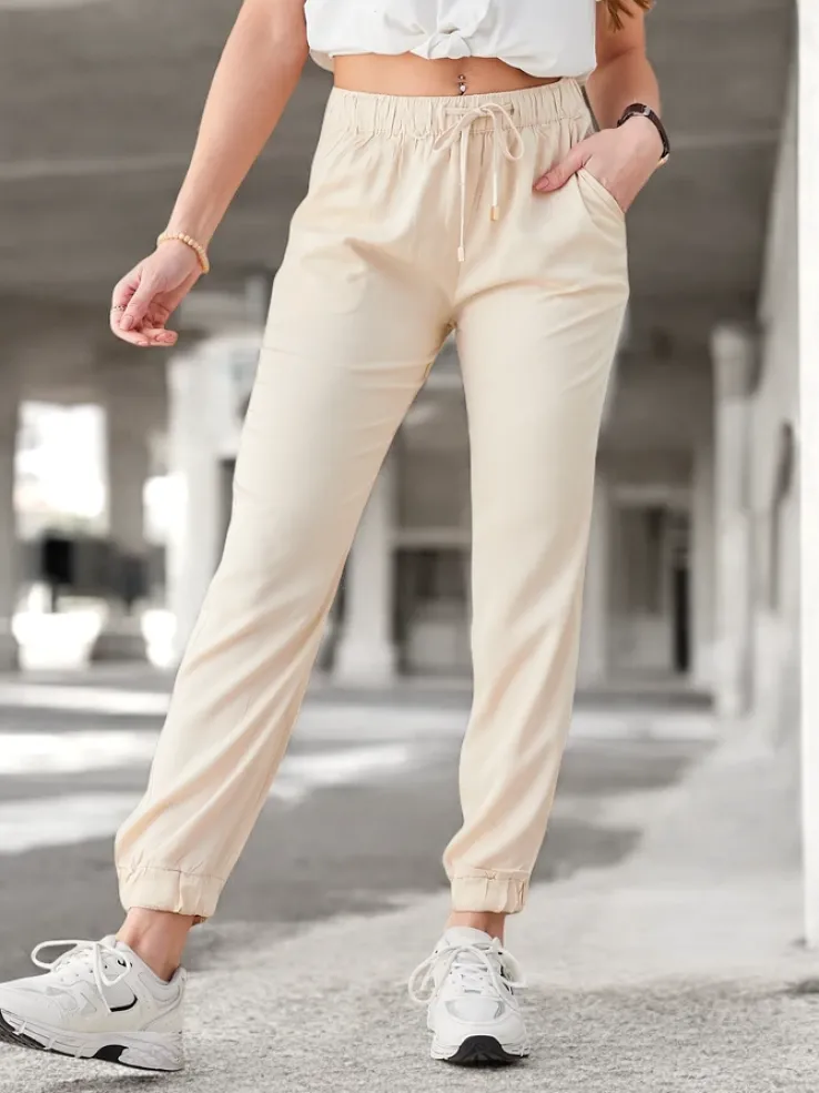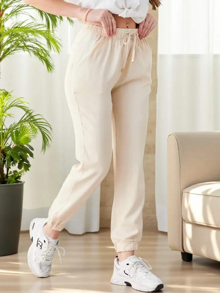 - Fenomenalne zwężane spodnie wykonane z lekkiej tkaniny, model posiada gumę w pasie i troczki. Dodatkowo 2 kieszenie. Hit tego sezonu! UWAGA: Dokładność pomiaru (+/-) 1 cm.
