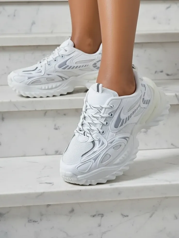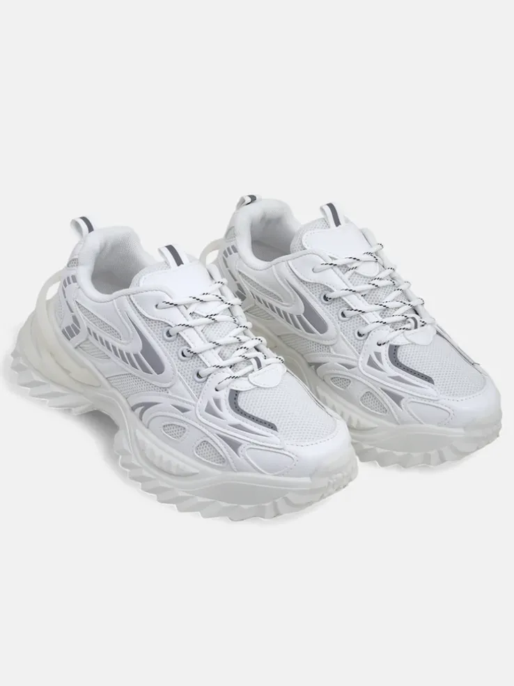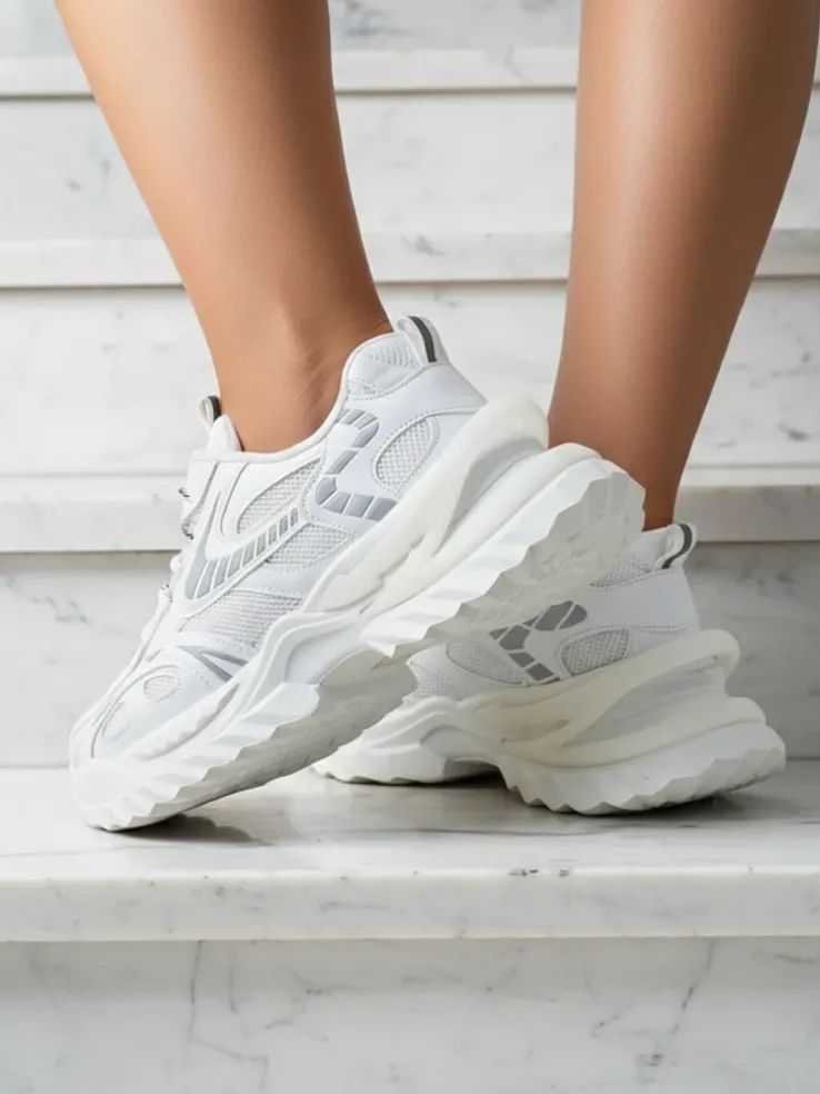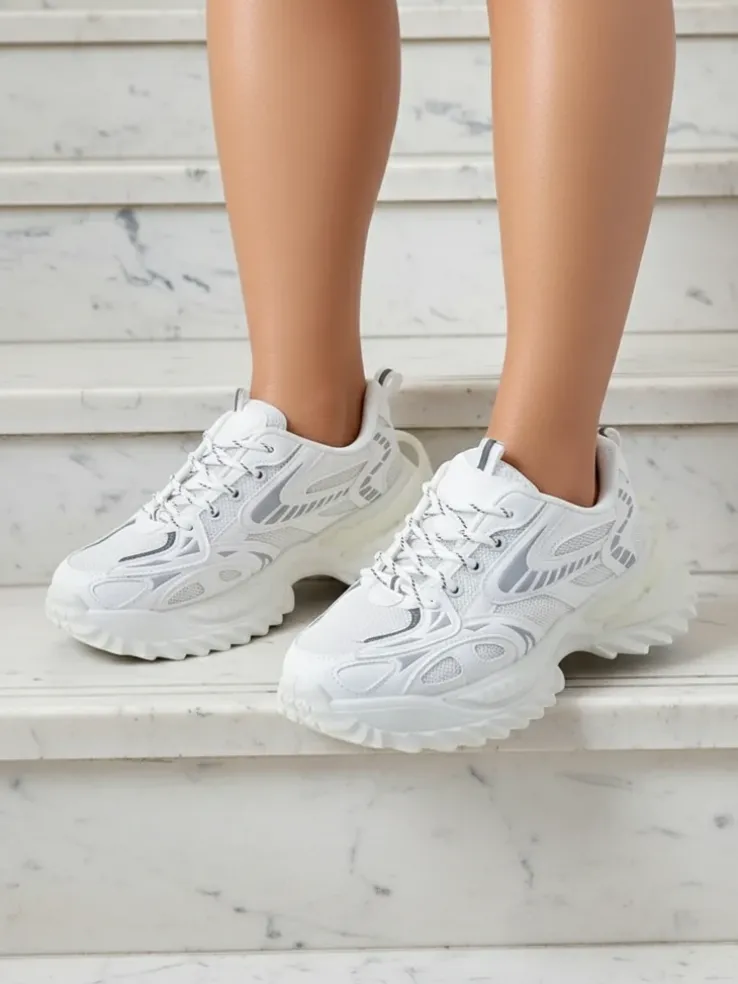 - Fenomenalne sneakersy damskie na grubszej podeszwie – perfekcyjne połączenie stylu i komfortu. Obuwie wykonane z eko skóry i tkaniny. Model sznurowany, posiada eko skórzaną wkładkę. Idealne dla aktywnych osób!