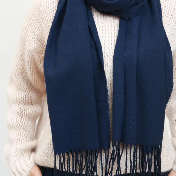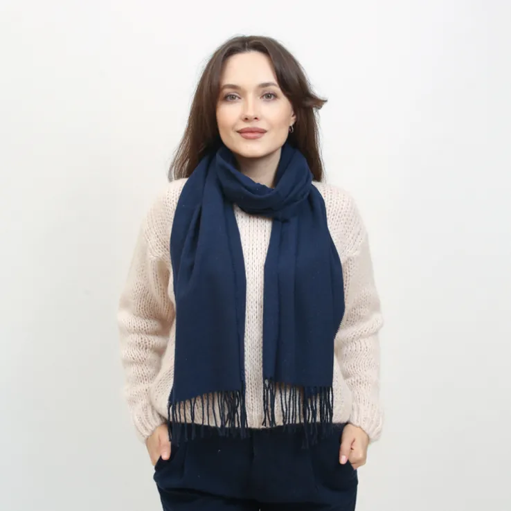 - Klasyczny jednokolorowy, ciepły damski szalik, wykonany z miękkiej tkaniny zakończonej frędzlami. Super dodatek do Twoich casualowych outfitów!