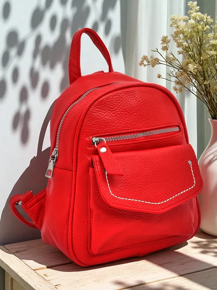 - Kompaktowy plecak z eko skory z jedną komorą i trzema kieszonkami na drobiazgi. Regulowane paski zapewniają wygodę noszenia. Stylowy, lekki i praktyczny idealny na miasto, uczelni i codzienne wypady.