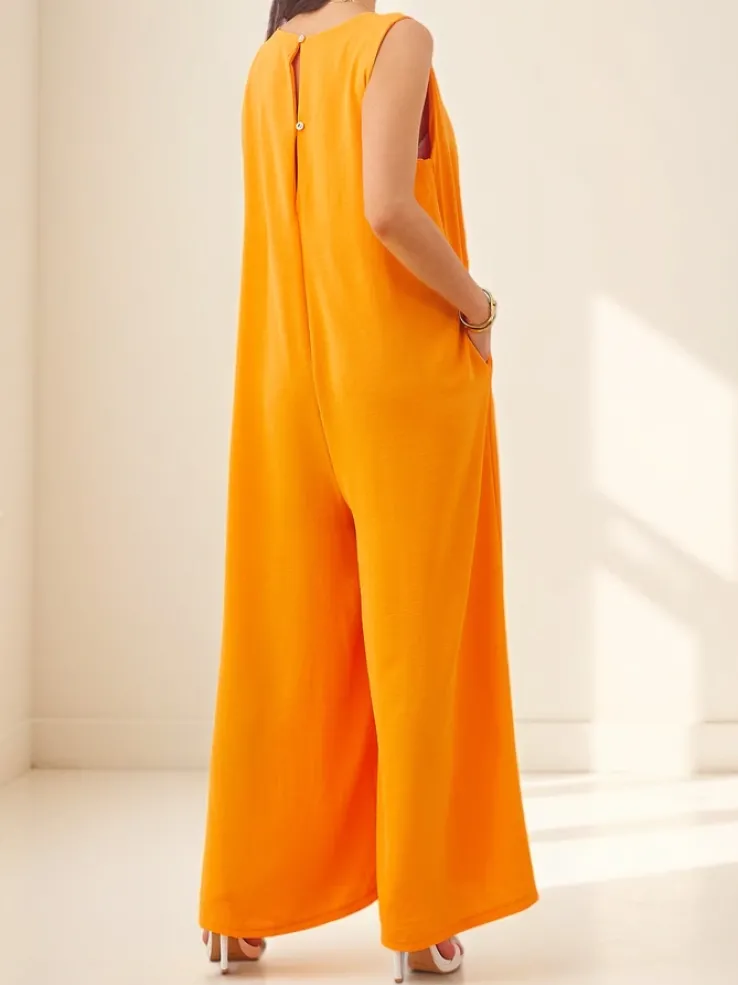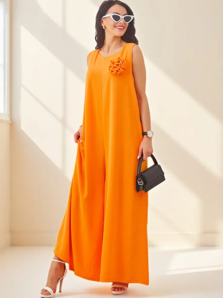 - Wiskozowy długi kombinezon na ramiączkach z szerokimi spodniami – lekki, przewiewny i wygodny, idealny na letnie dni. UWAGA: Dokładność pomiaru (+/-) 1 cm.