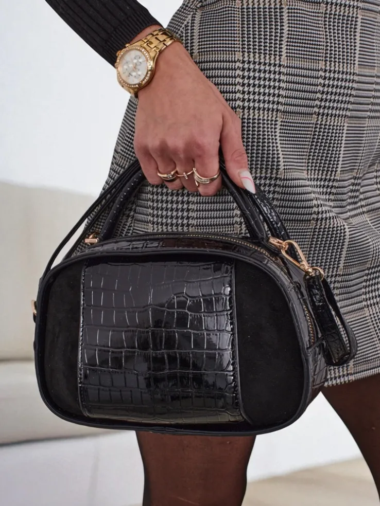 - Stylowa mała torebka z eko skóry lakierowanej i zamszowej. 1 komora, regulowany i odpinany pasek. Idealna na co dzień i na wyjścia – kompaktowa, a pomieści wszystko, co ważne.