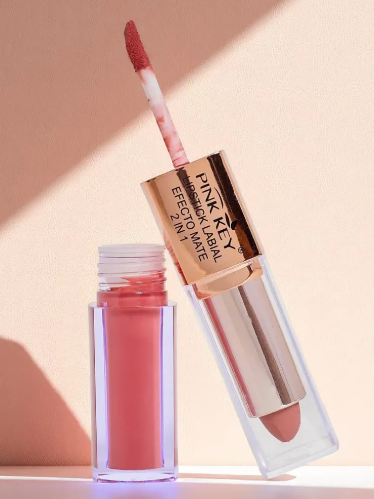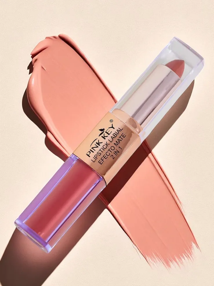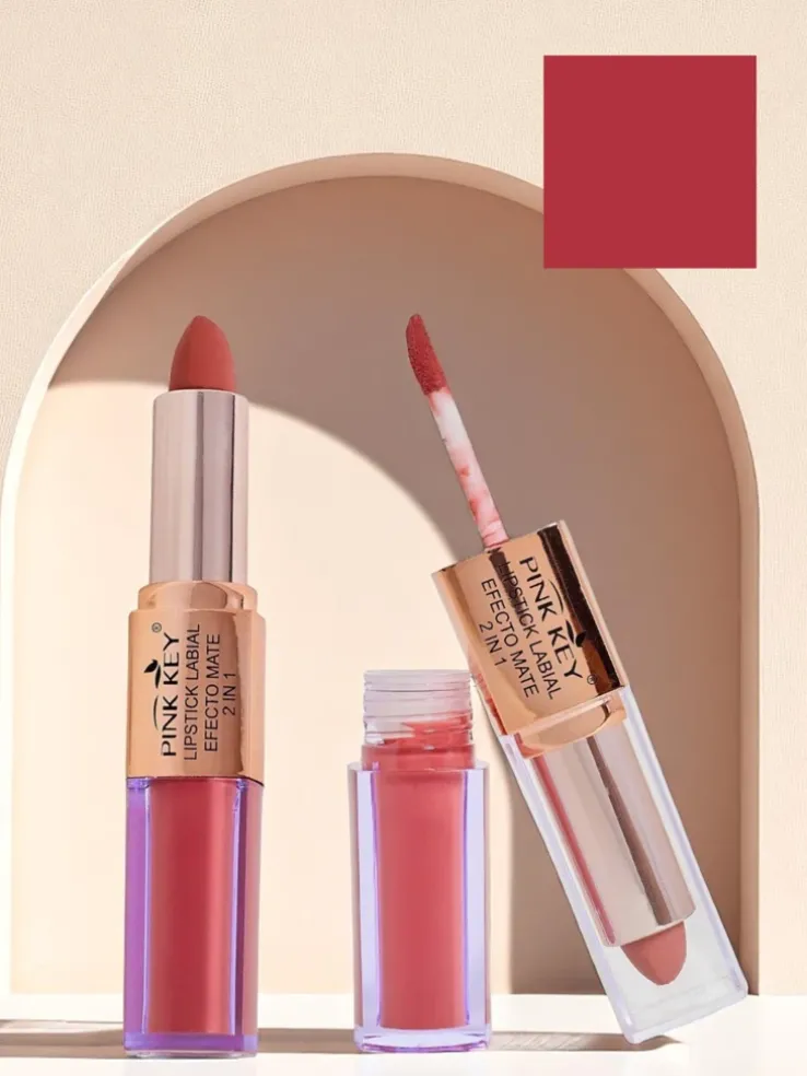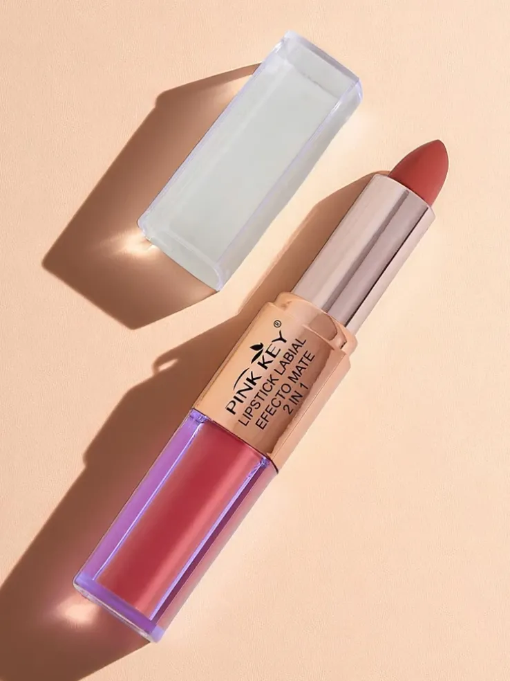 - Pomadka 2w1 w sztyfcie i w płynie łączy precyzję i trwałość z komfortem noszenia. Sztyft nadaje intensywny kolor, a płynna formuła zapewnia długotrwały efekt i satynowe wykończenie. Idealna do każdej okazji – bez poprawek przez wiele godzin.