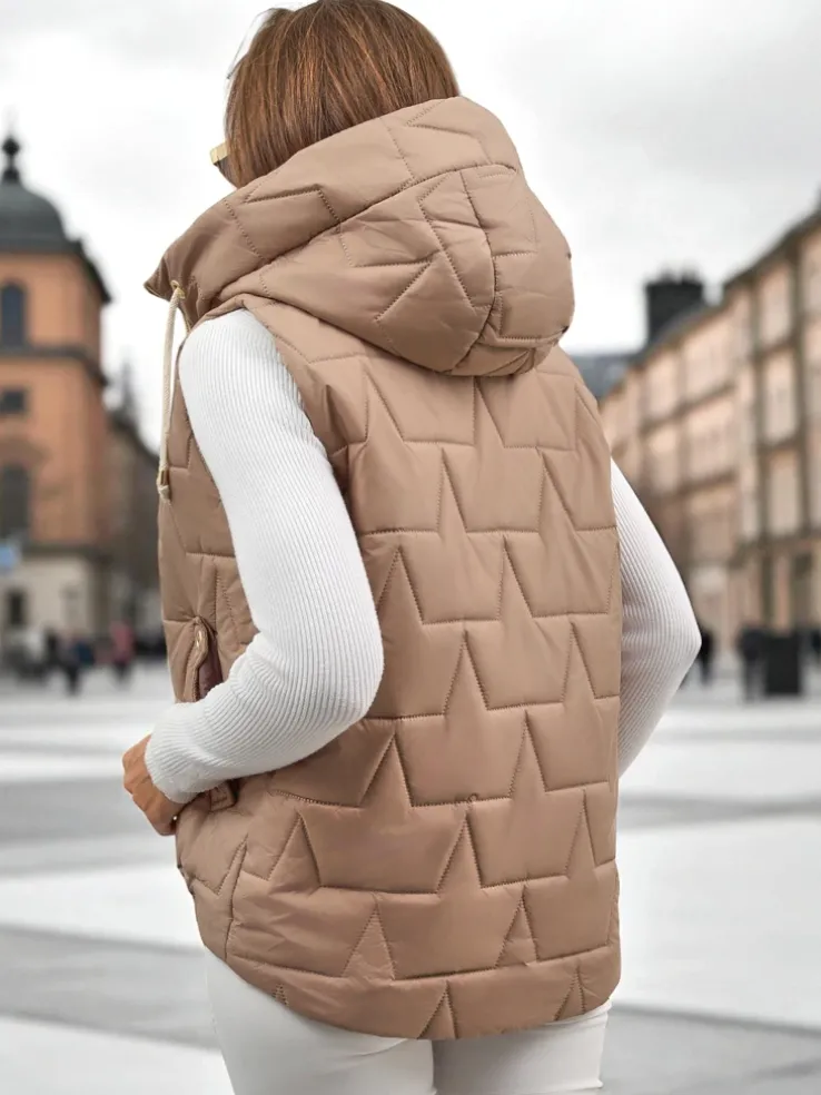 - Rewelacyjna pikowana kamizelka damska. Bezrękawnik zapinany suwakiem, posiada kaptur i 2 kieszenie. Produkt z wypełnieniem syntetycznym. Świetne dopełnienie jesiennych stylizacji! UWAGA: Dokładność pomiaru (+/-) 1 cm.