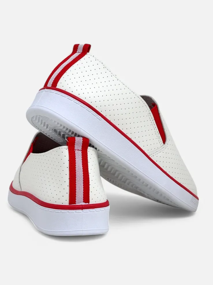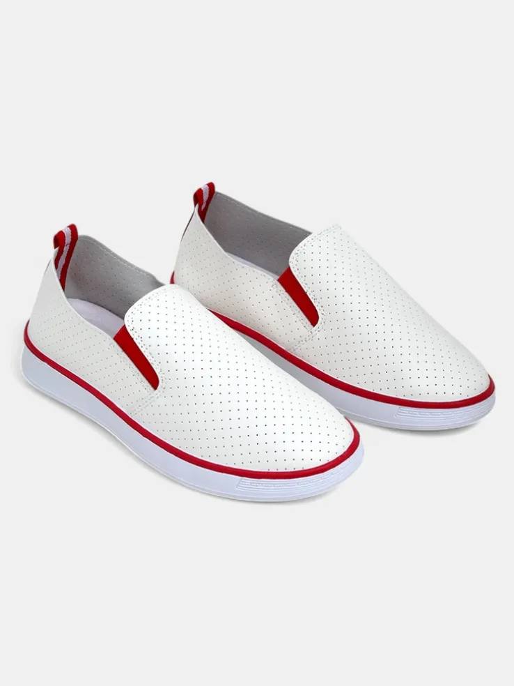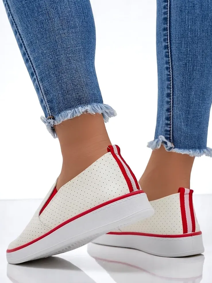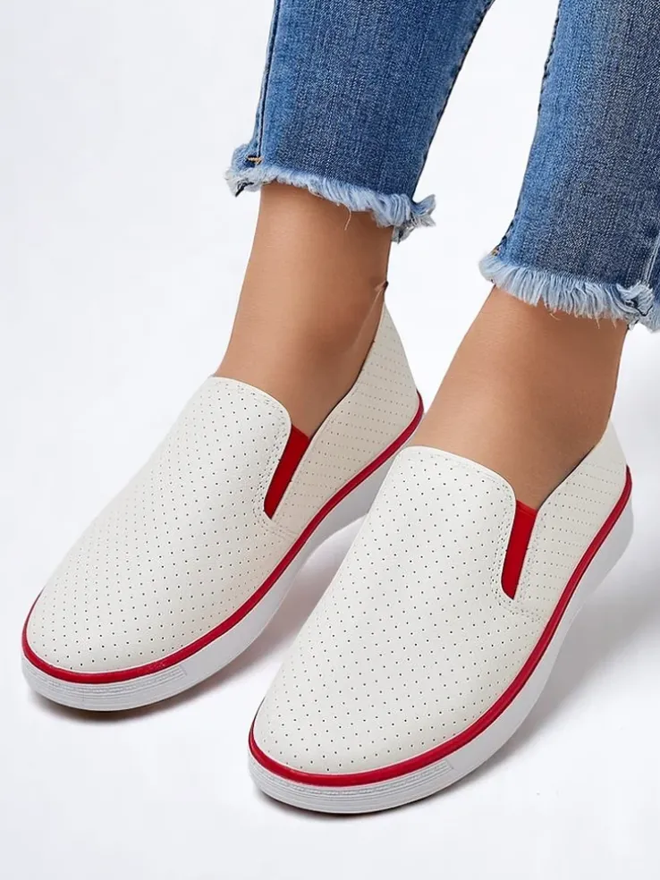 - Ażurowe damskie buty sportowe typu slip on, wykonane ze skóry ekologicznej. Środek wyłożony tkaniną. Idealny wybór na co dzień!