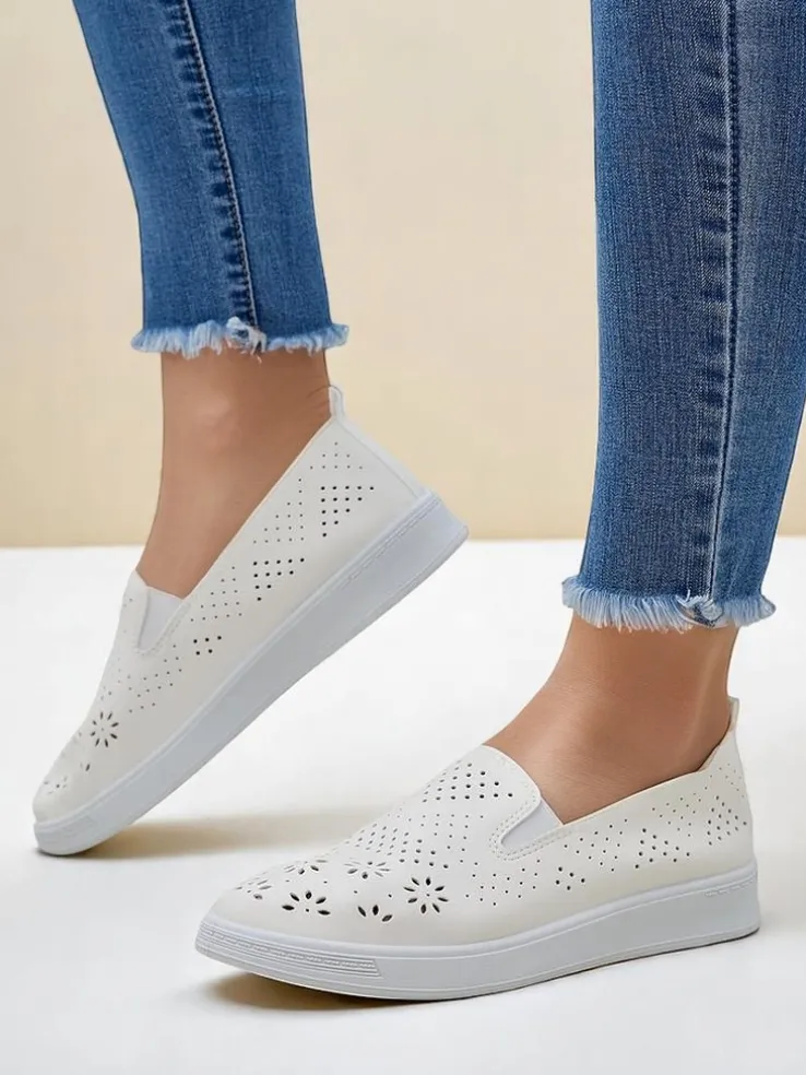 - Ażurowe damskie buty sportowe typu slip on, wykonane ze skóry ekologicznej. Środek wyłożony tkaniną. Idealny wybór na co dzień!