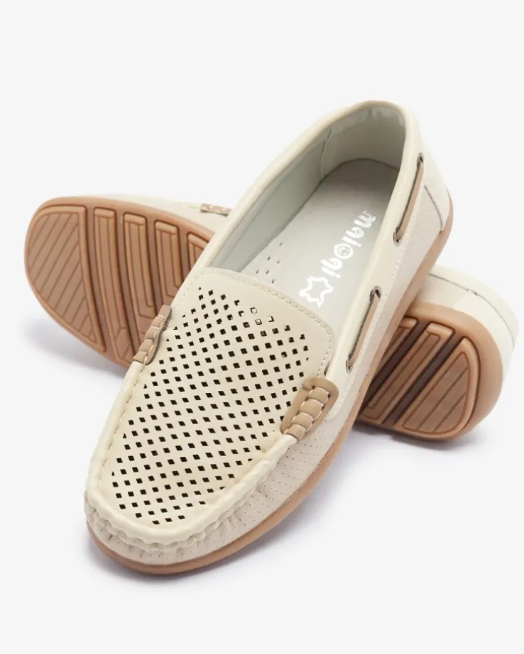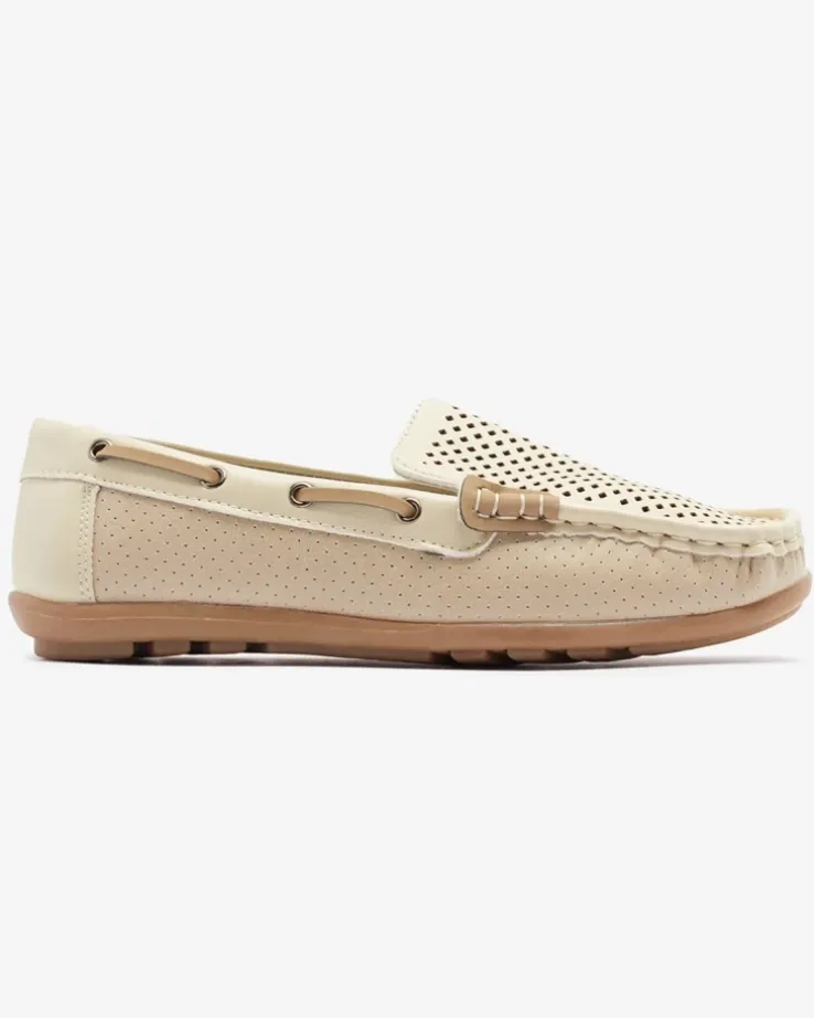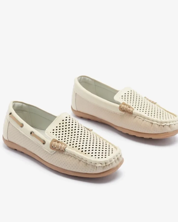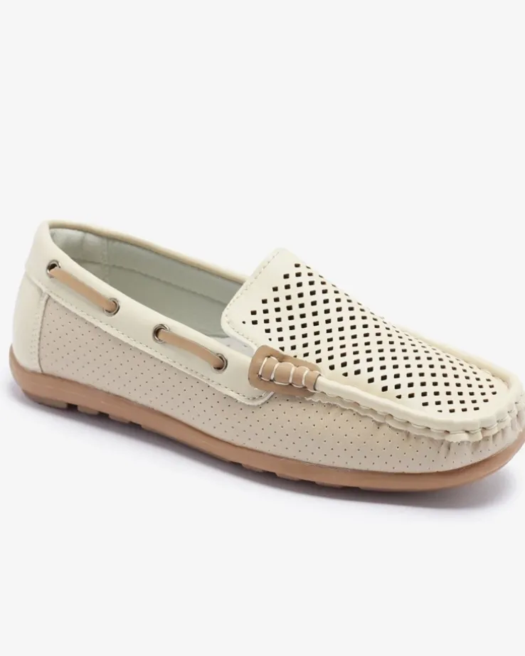 - Wygodne dziecięce mokasyny wykonane z eko-skóry. Cholewka posiada ażurowe wykończenie. Wkładka wyłożona skórą naturalną. Idealnie się sprawdzą na co dzień.