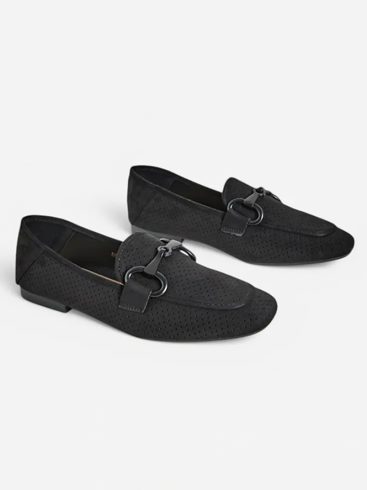 - Ażurowe damskie mokasyny na płaskiej podeszwie. Model wykonany ze skóry ekologicznej zamszowej z wypełnieniem ze skóry ekologicznej. Idealny dodatek do codziennych outfitów!
