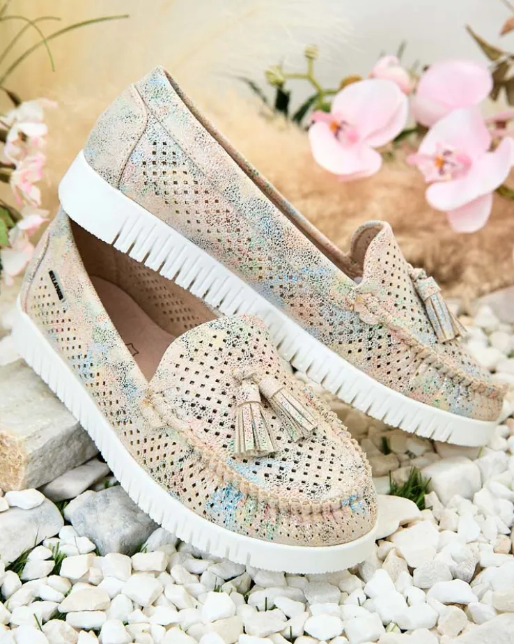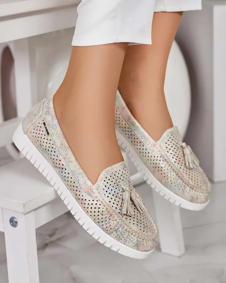 - Ażurowe damskie mokasyny na płaskiej podeszwie. Model jest wykonany ze skóry ekologicznej. W środku wkładka ze skóry naturalnej. Idealna baza na co dzień!