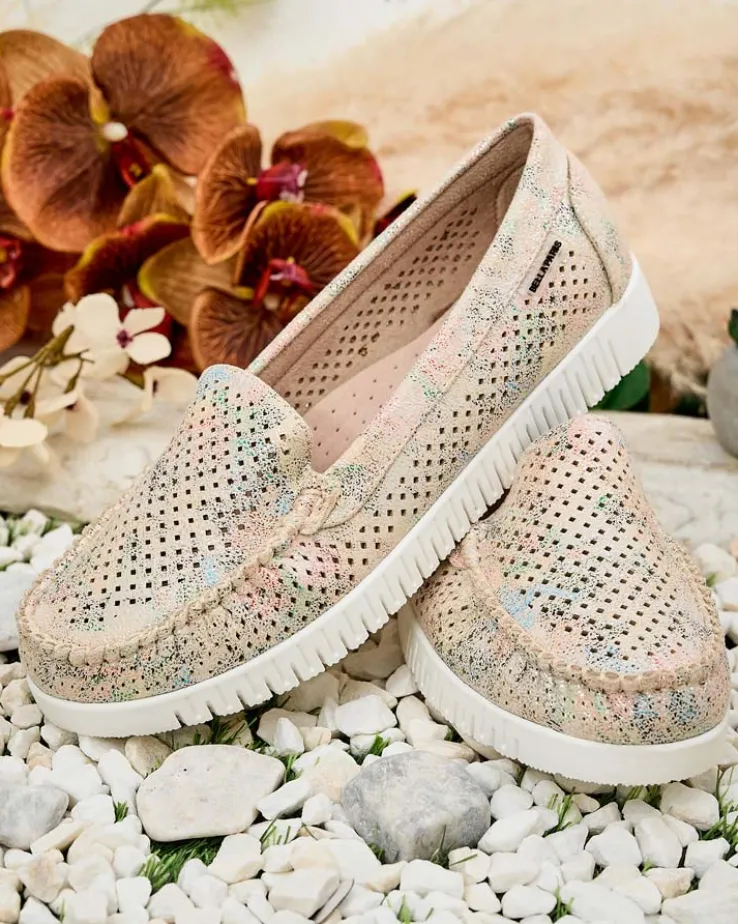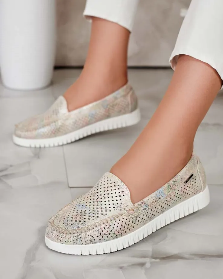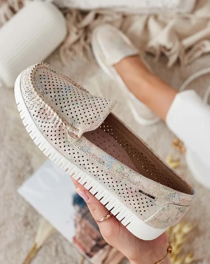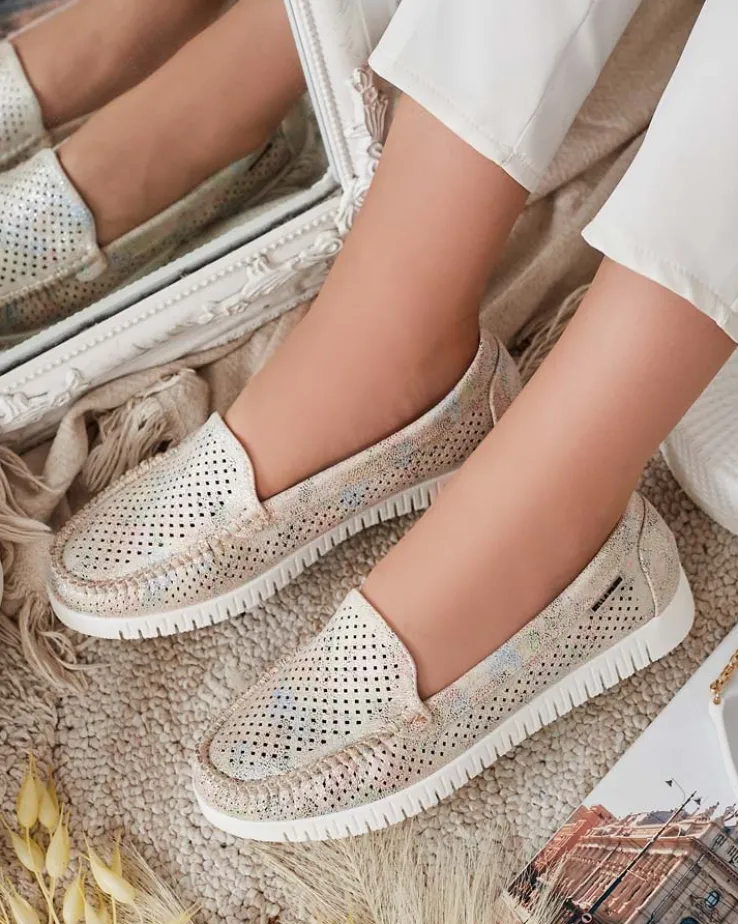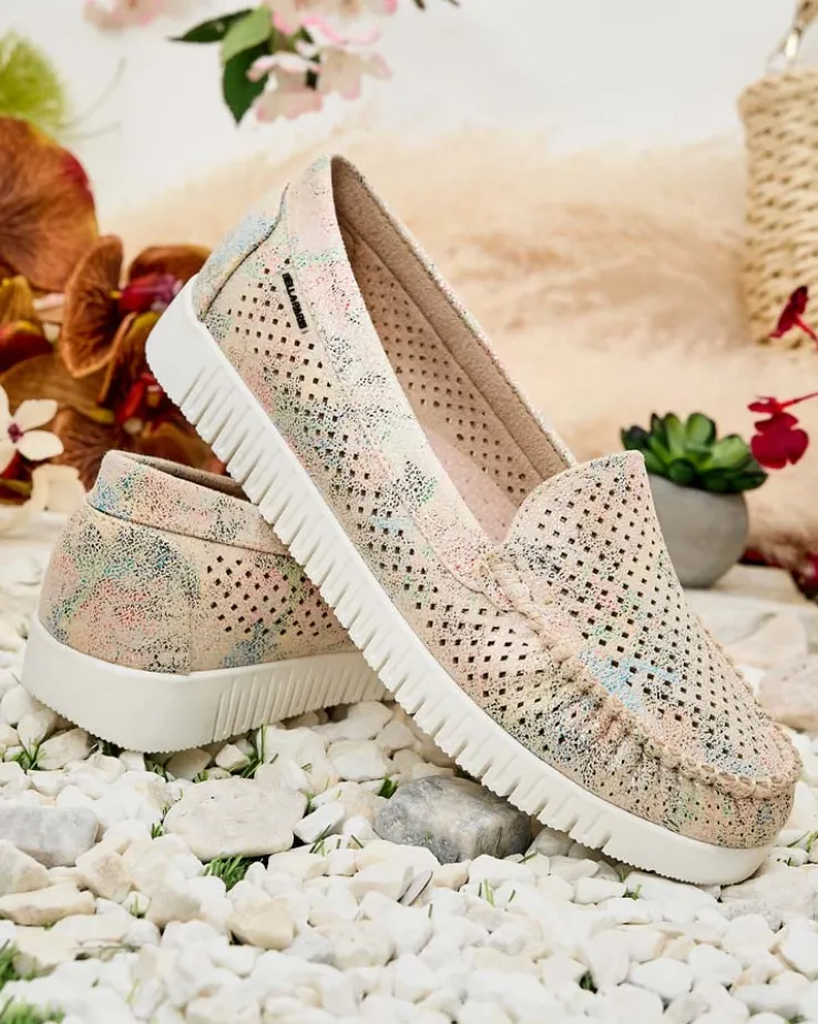 - Skórzane damskie mokasyny na płaskiej podeszwie. Model jest wykonany ze skóry ekologicznej. W środku wkładka ze skóry naturalnej. Idealna baza na co dzień!