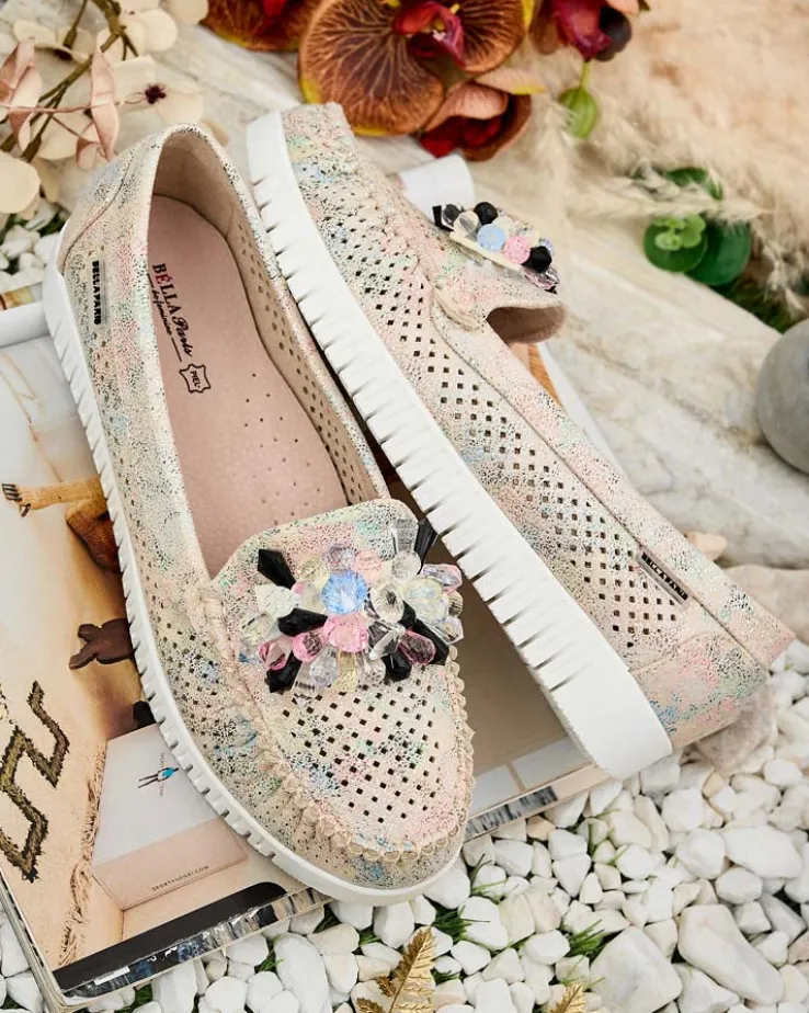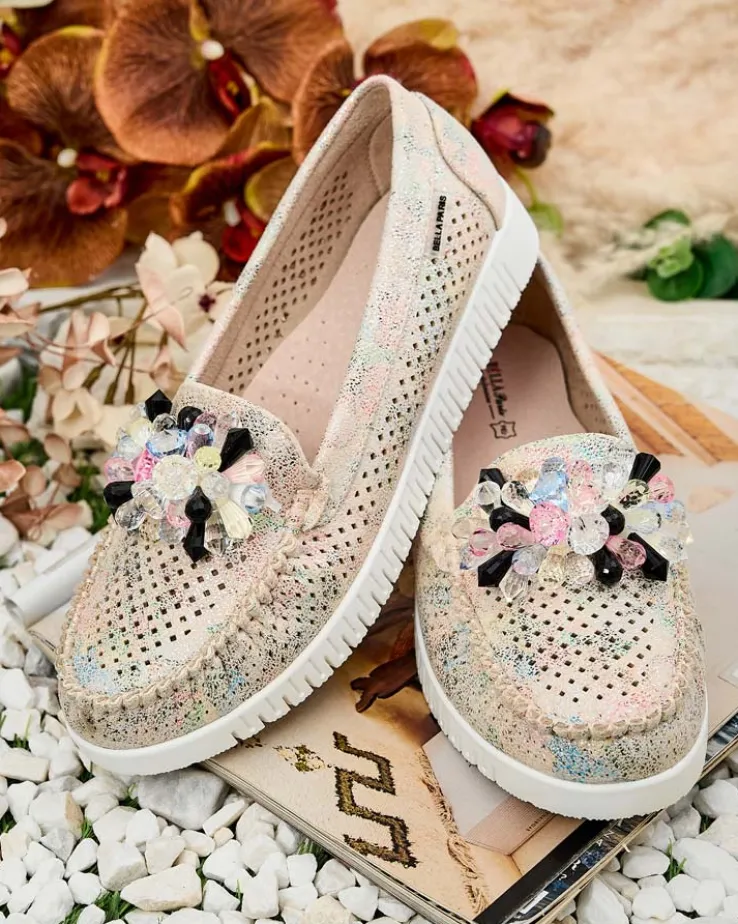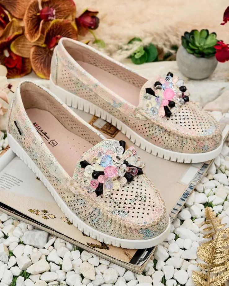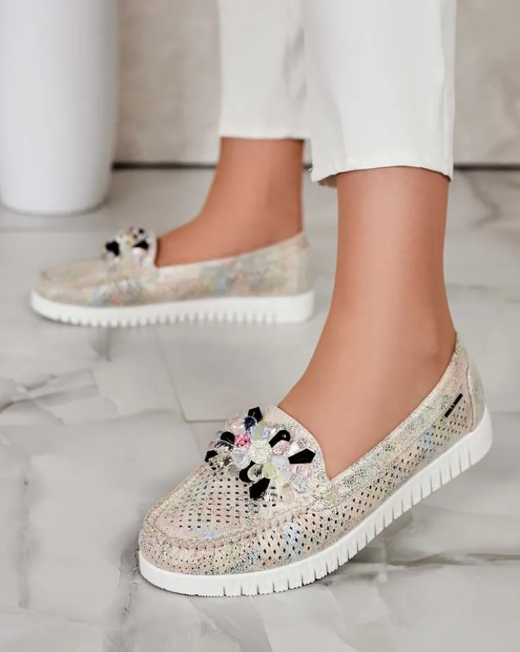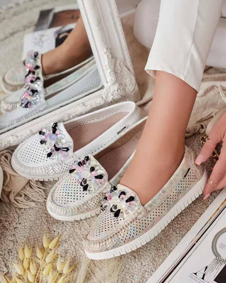 Royalfashion Ażurowe mokasyny damskie z koralikami Nasfali