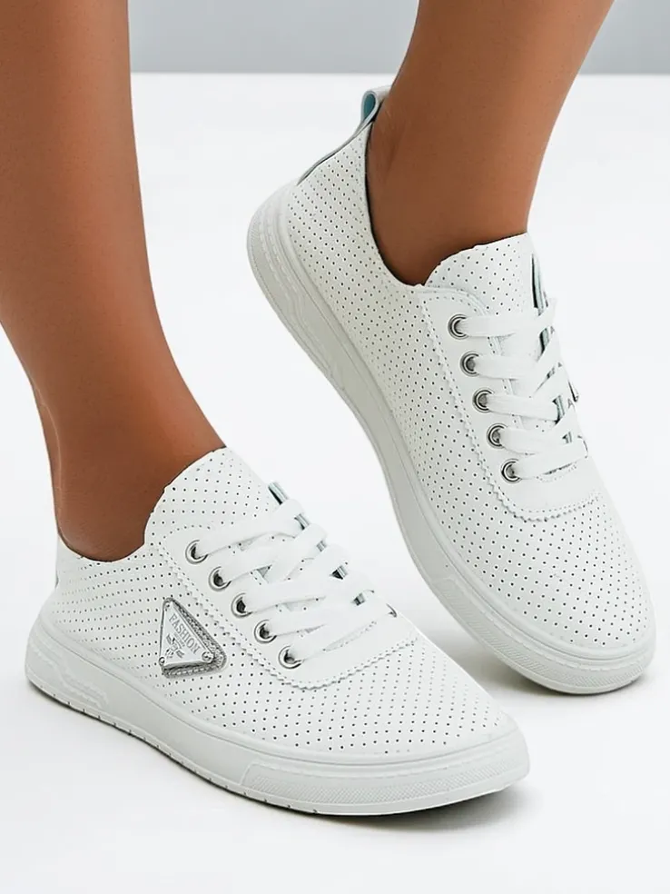 - Oryginalne ażurowe sportowe buty damskie z printem na płaskiej podeszwie – perfekcyjne połączenie stylu i komfortu. Obuwie wykonane z eko skóry. Model sznurowany, posiada tkaninową wkładkę. Idealne dla aktywnych osób!
