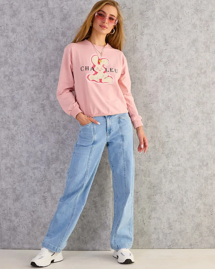 - Dodaj uroku swoim stylizacjom z naszą cieńszą bluzą, zdobioną naszywką króliczka. Wkładana przez głowę, z okrągłym dekoltem i długimi rękawami. Idealna na co dzień, gdy chcesz poczuć się swobodnie, a jednocześnie stylowo!