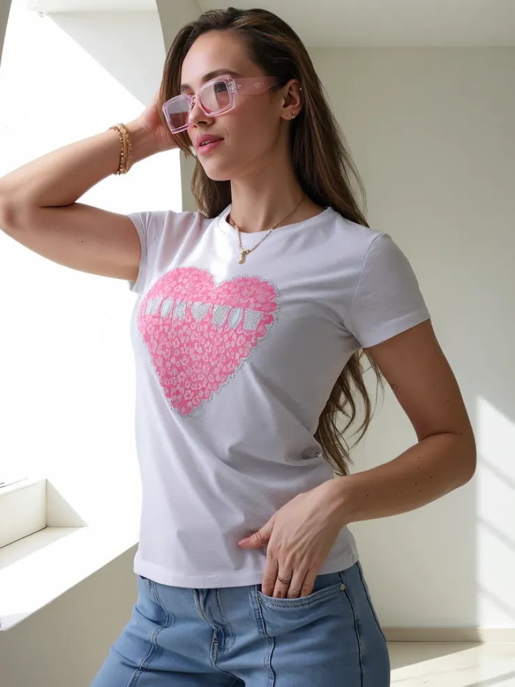 - Oryginalna damska bluzka z okrągłym dekoltem, uszyta z miękkiej i przyjemnej w dotyku tkaniny. Całość zdobiona efektownymi cekinami, a krótki rękaw dodaje lekkości. Doskonały wybór do tworzenia modnych i stylowych zestawów!