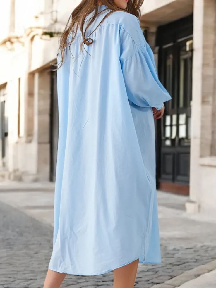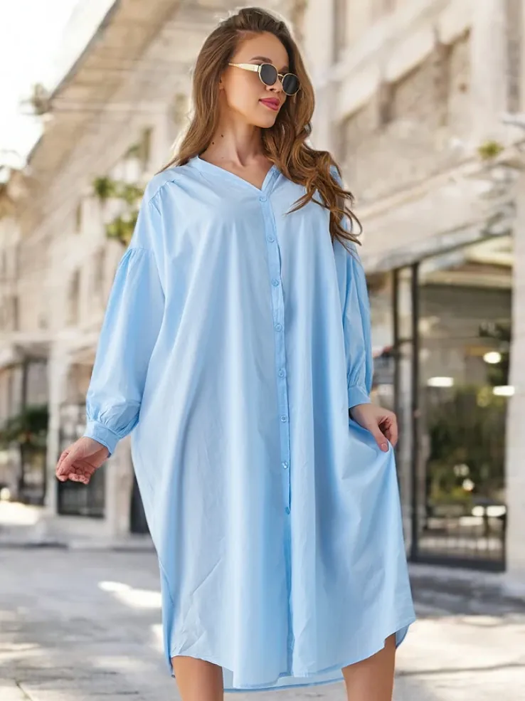 - Klasyczna, długa damska koszula a’la sukienka, wykonana z przyjemnej tkaniny. Posiada dekolt w serek oraz długie rękawy. Prosty krój zapewni dopasowanie do każdej sylwetki! UWAGA: Dokładność pomiaru (+/-) 1 cm.