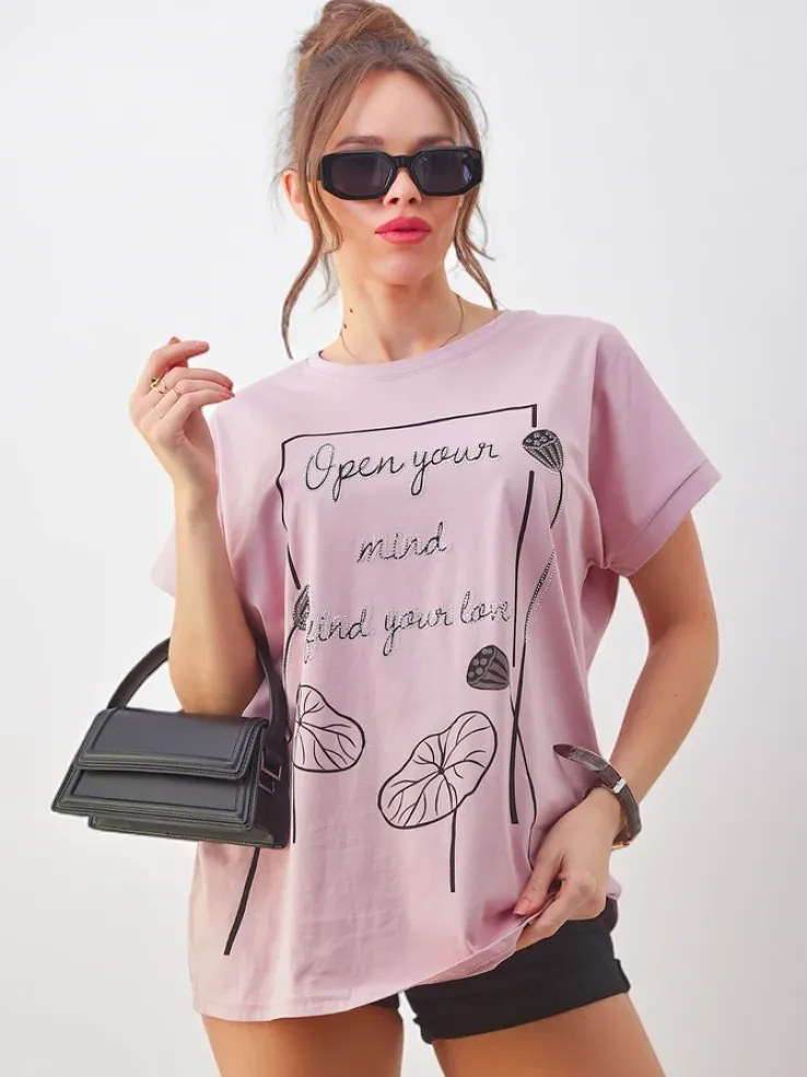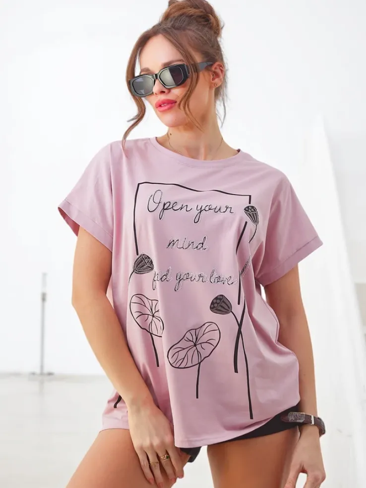 - Bawełniany damski t-shirt z oryginalnym nadrukiem, który przyciąga uwagę i dodaje charakteru każdej stylizacji. Wygodny i stylowy wybór na co dzień.
