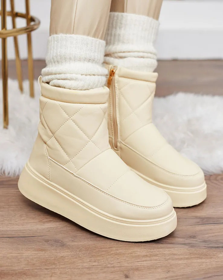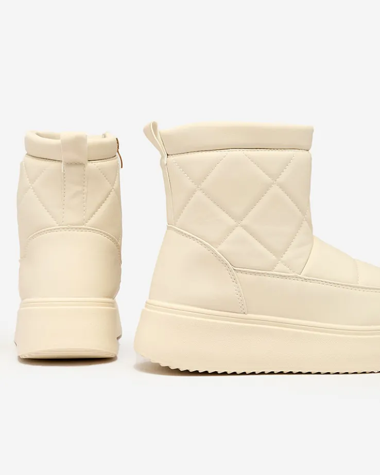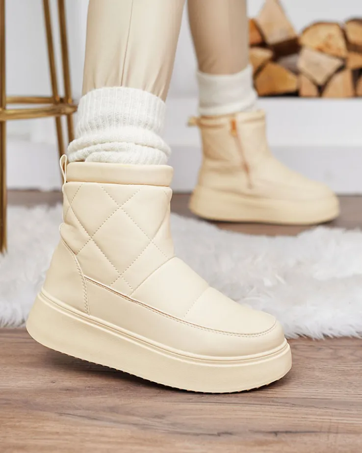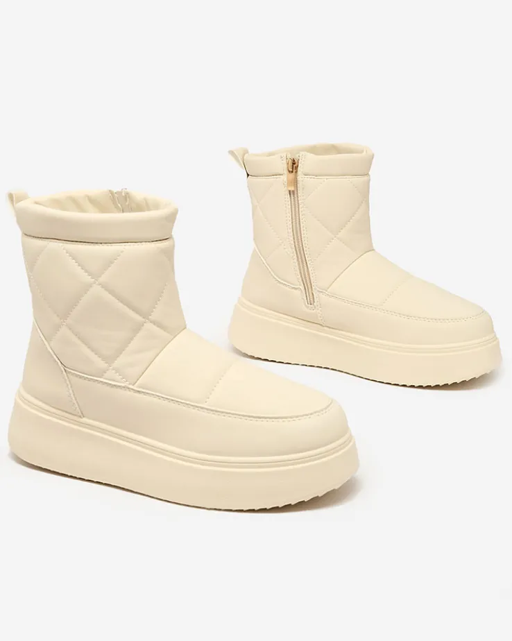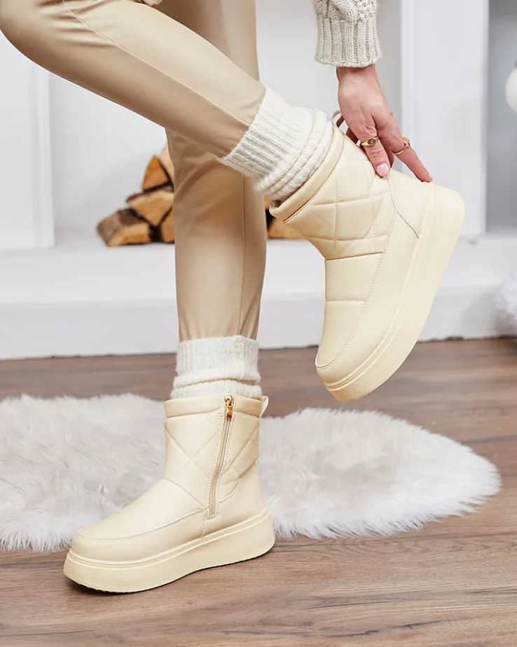 - Damskie obuwie typu śniegowce z cholewką wykonaną ze skóry ekologicznej. W środku ocieplenie w formie futerka, obuwie zasuwane. Idealne na chłodniejszą porę roku!