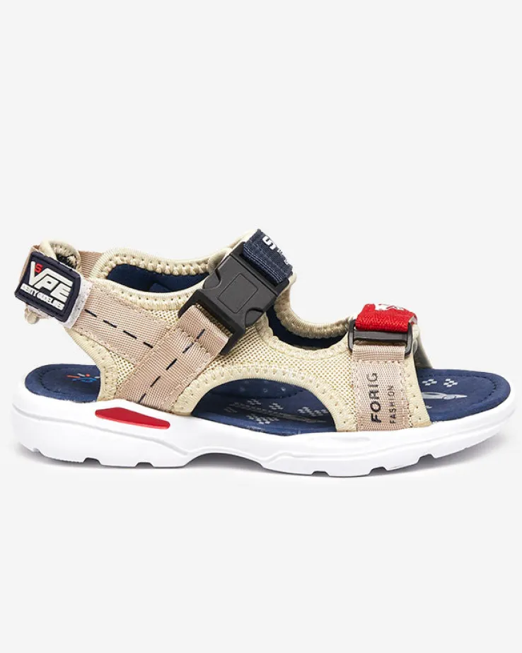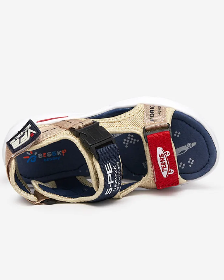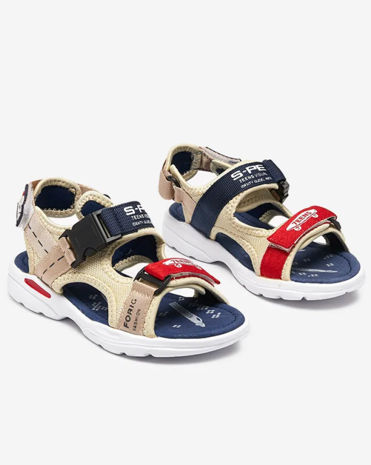 - Chłopięce sandały na gumowej podeszwie, wykonane z tkaniny. Szerokość obuwia można regulować za pomocą rzep. Wkładka jest wyłożona skórą ekologiczną. Idealne na wakacyjne wycieczki!