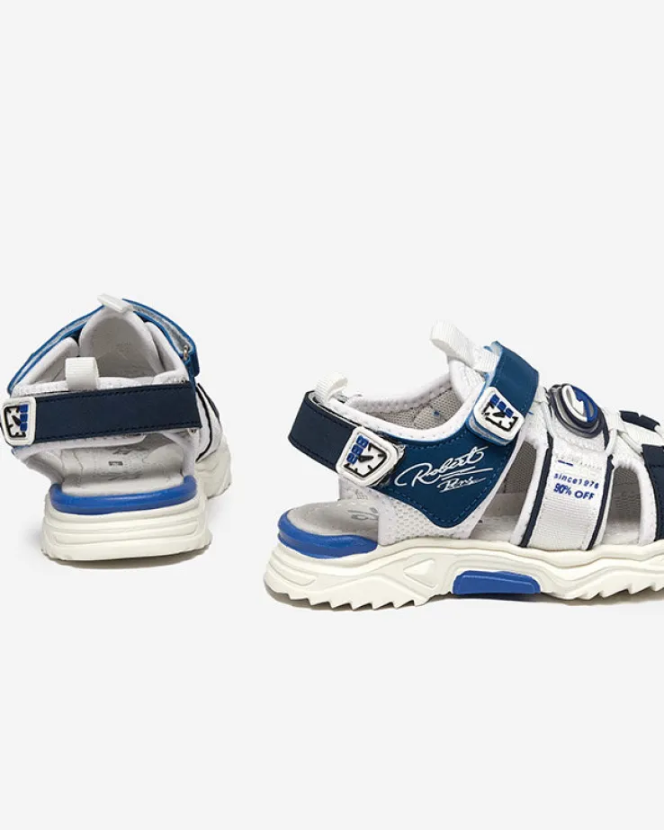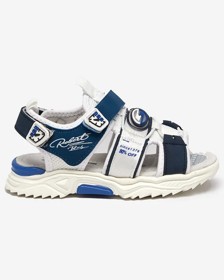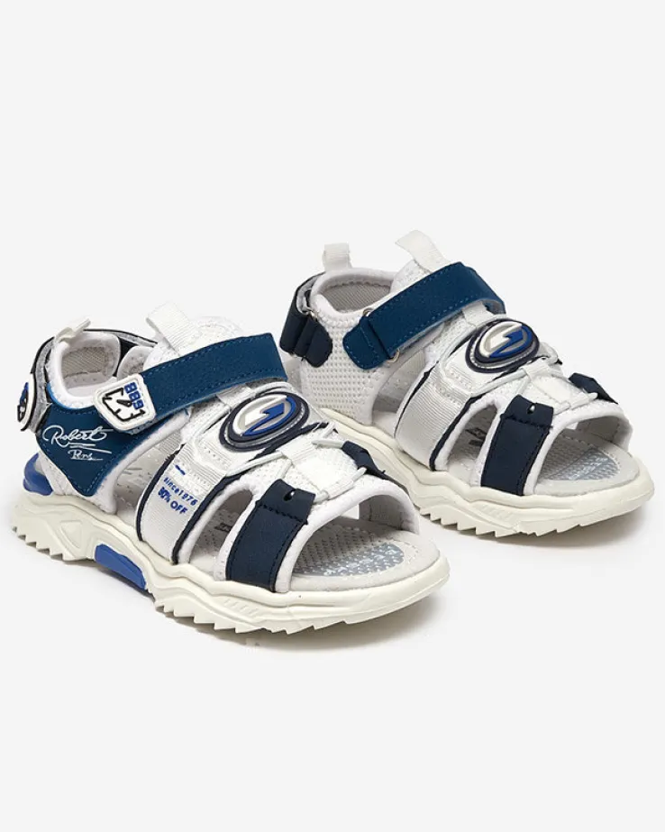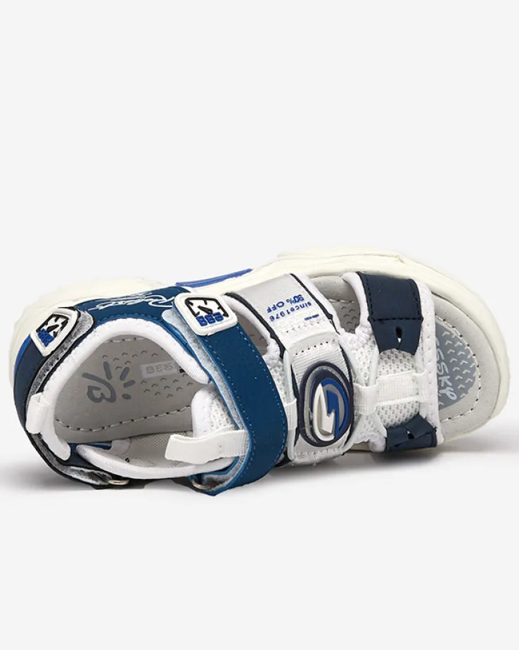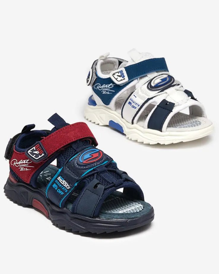 - Chłopięce sandały na gumowej podeszwie, wykonane z połączenia nubuku ekologicznego oraz tkaniny. Szerokość obuwia można regulować za pomocą zapięcia na rzepy. Wkładka jest wyłożona skórą ekologiczną. Idealne na wakacyjne wycieczki!