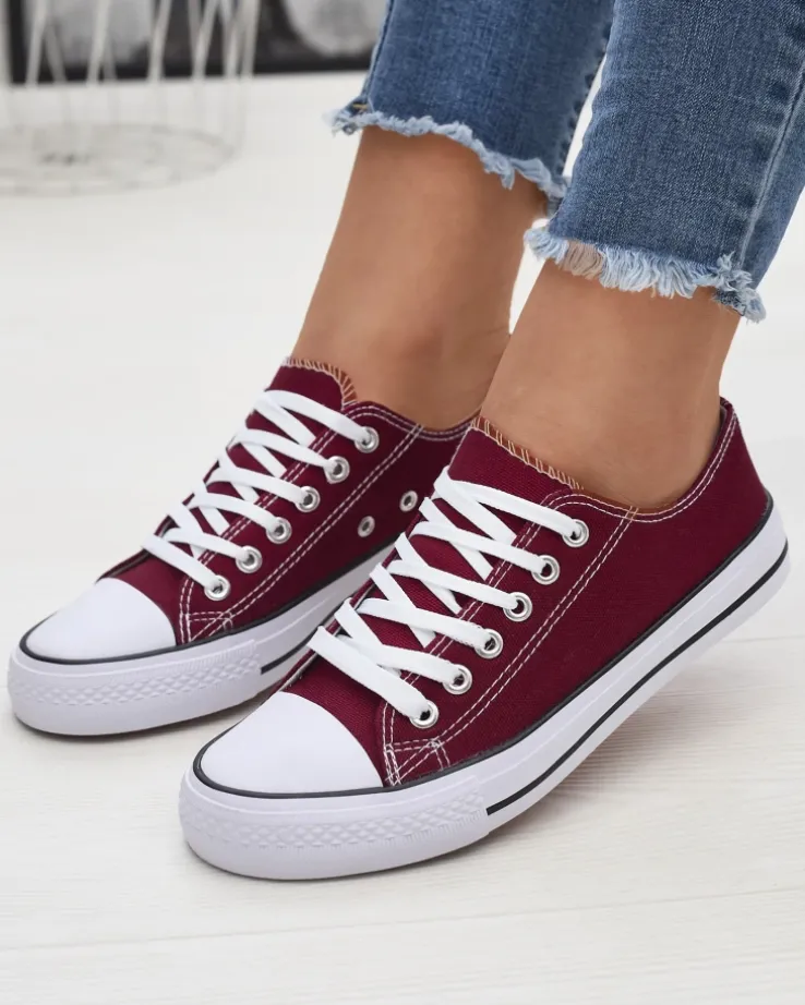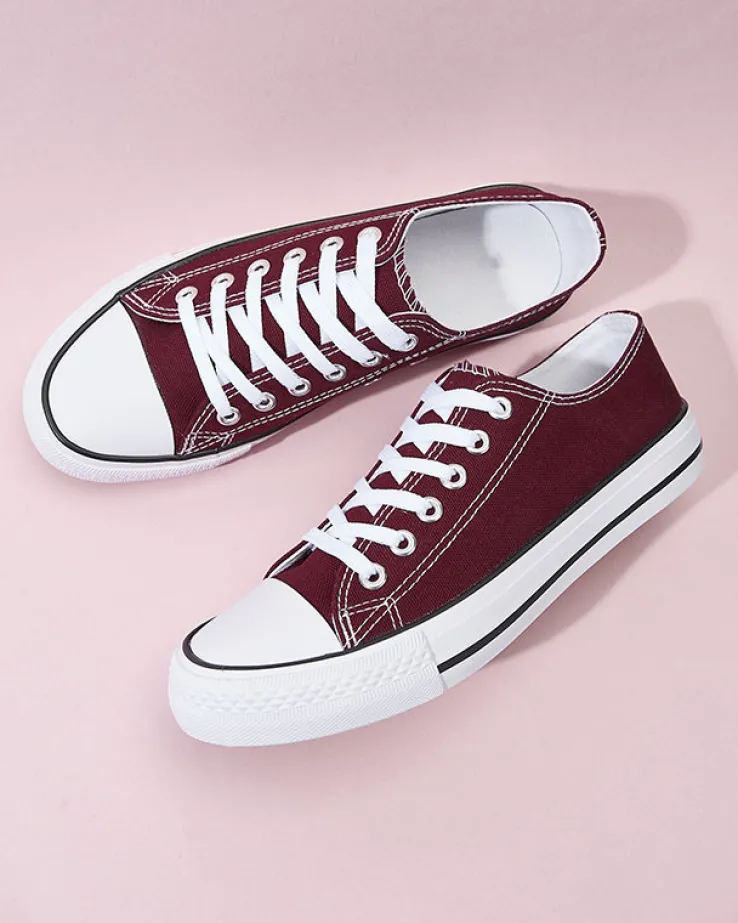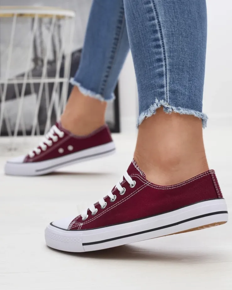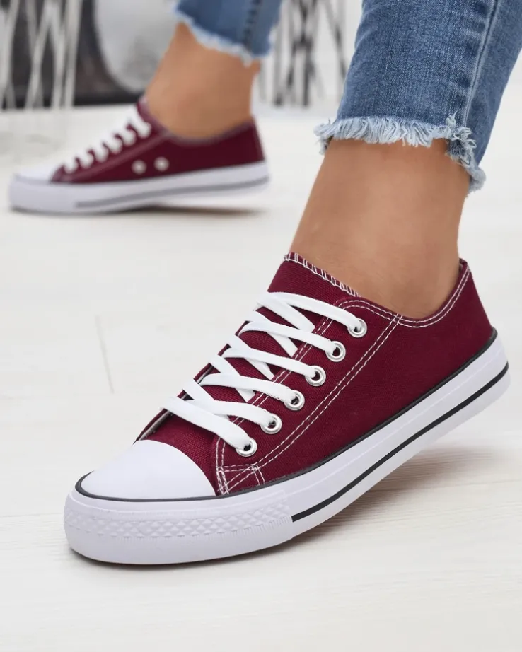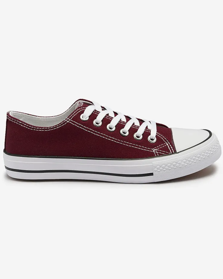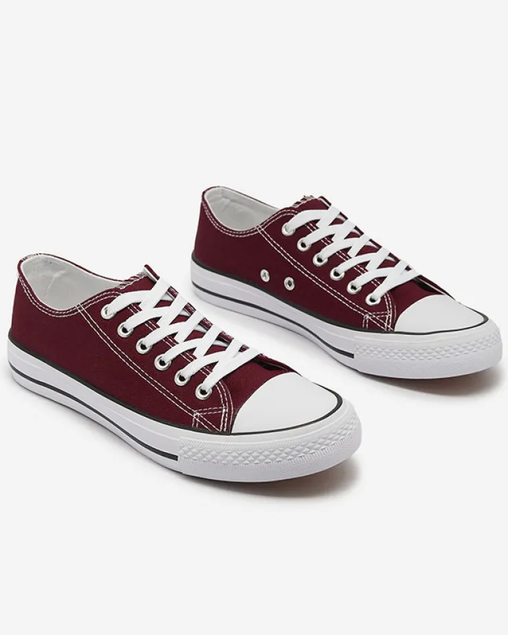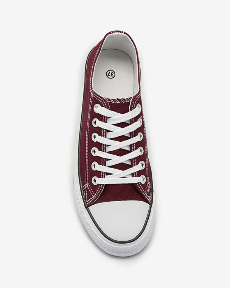 - Klasyczne damskie sznurowane trampki na płaskiej podeszwie. Cholewka jak i wkładka wykonane są z materiału tkaninowego. Super dodatek do Twoich casualowych outfitów!