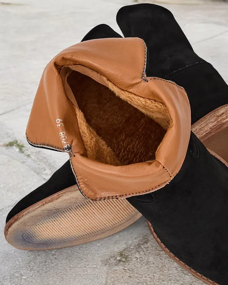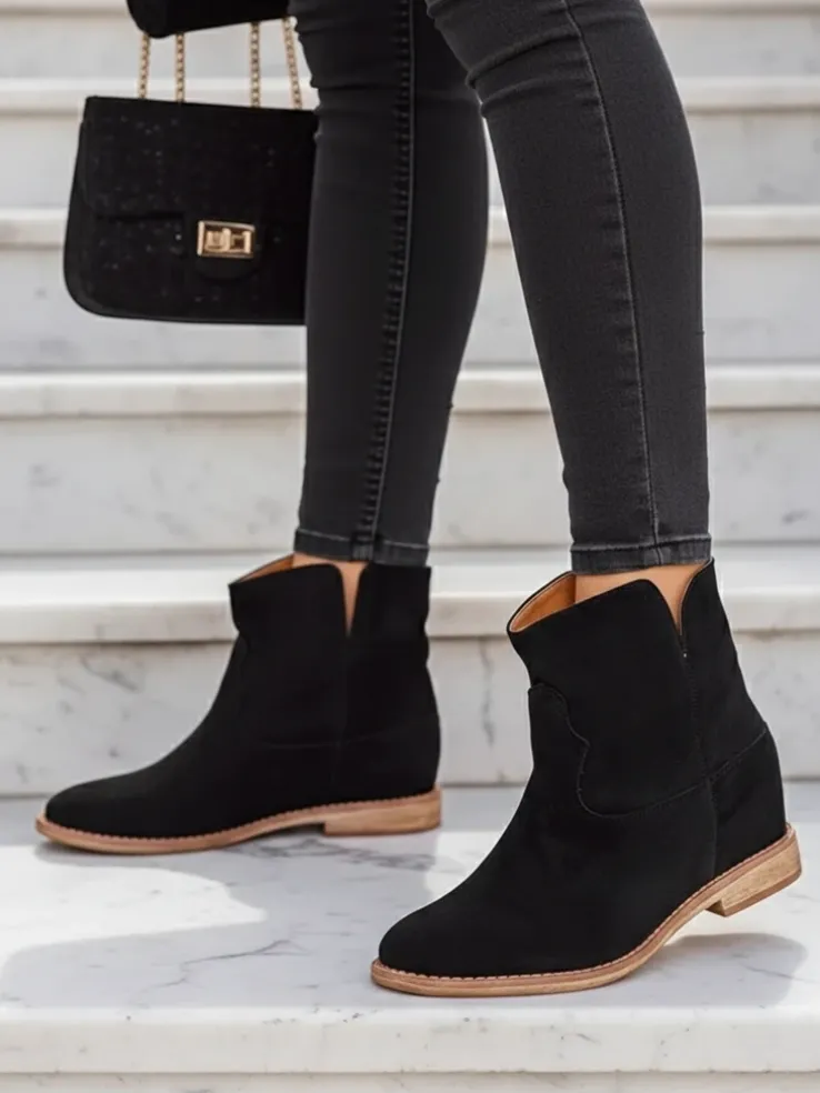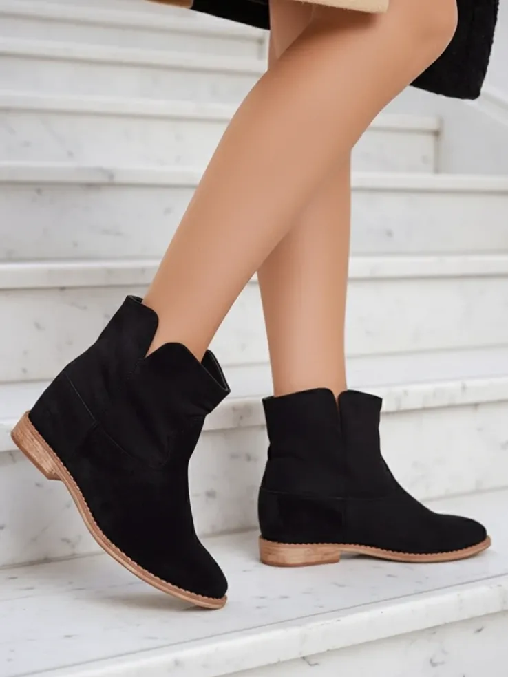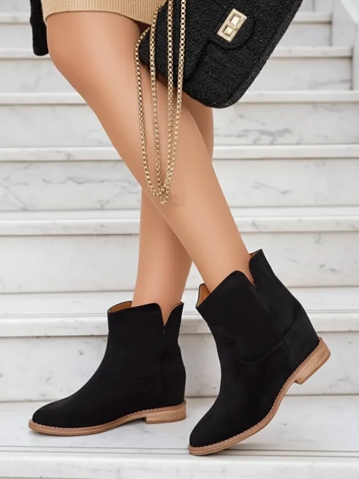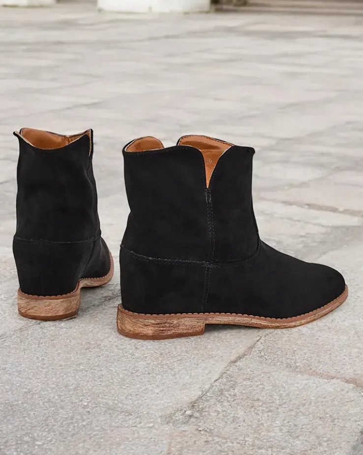 - Klasyczne kowbojki na krytym koturnie wykonane z eko-zamszu w szarym kolorze. Obuwie damskie posiada ocieplenie w formie futerka. Botki są świetnym dodatkiem do spodni oraz sukienek!