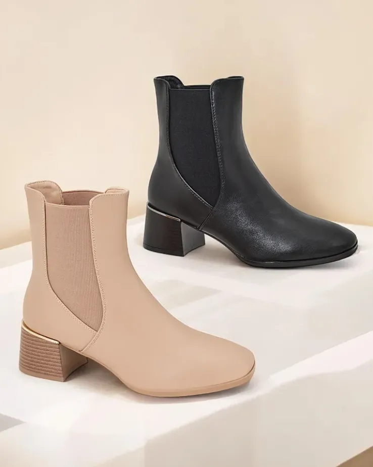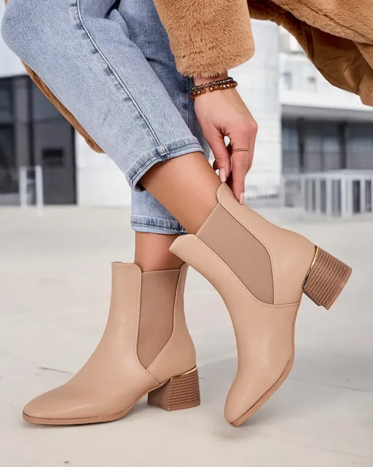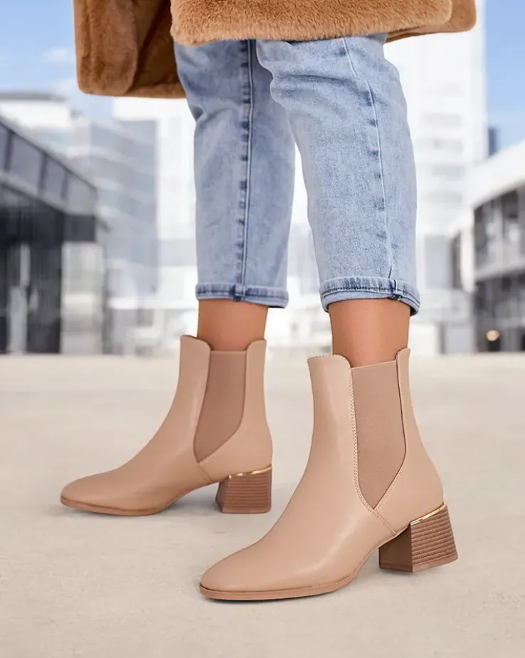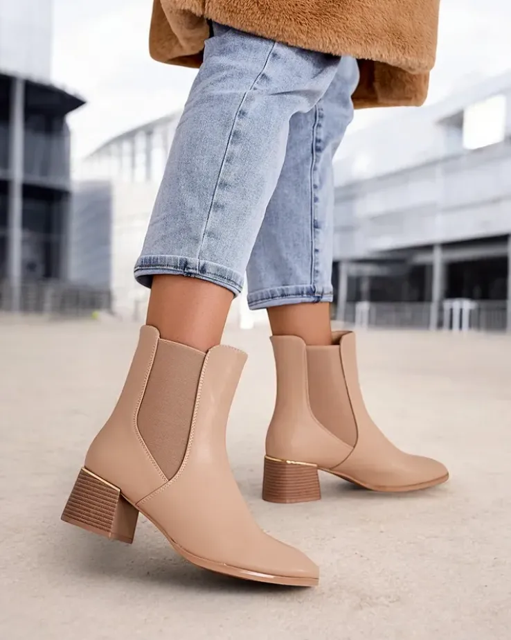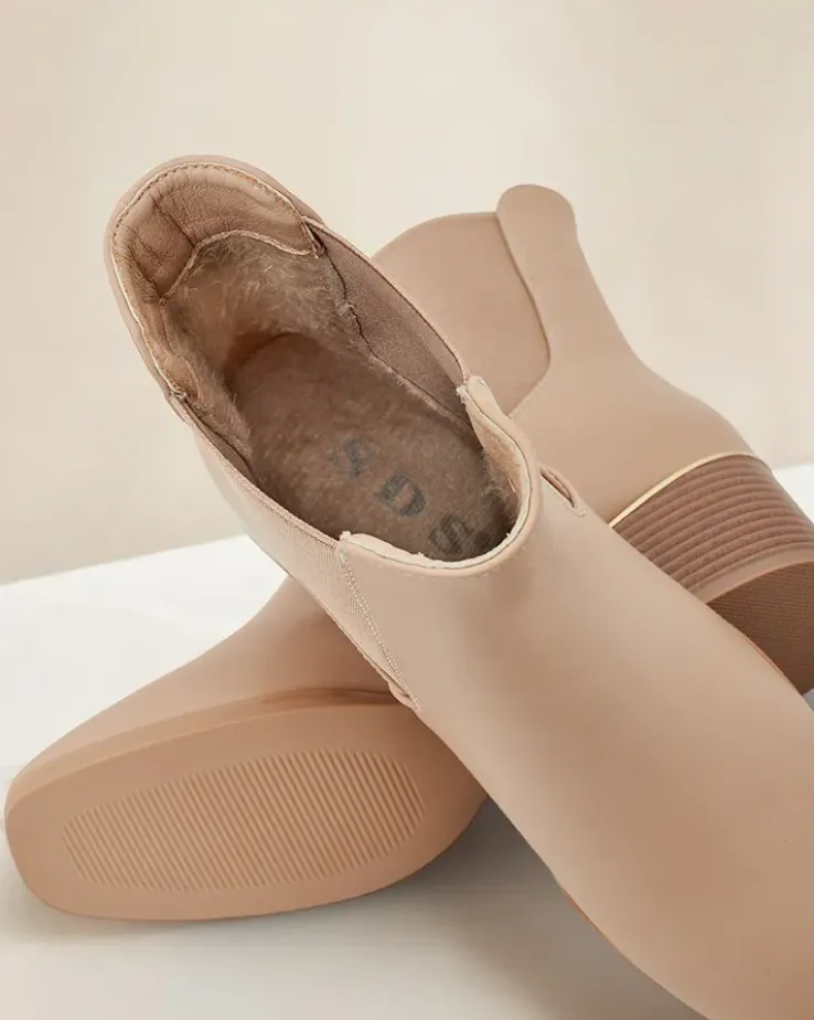 - Stylowe damskie botki na niskim słupku. Cholewka wykonana ze skóry ekologicznej. Środek wypełniony delikatnym futerkiem. Model wsuwany, nosek okrągły. Świetny wybór na jesień!