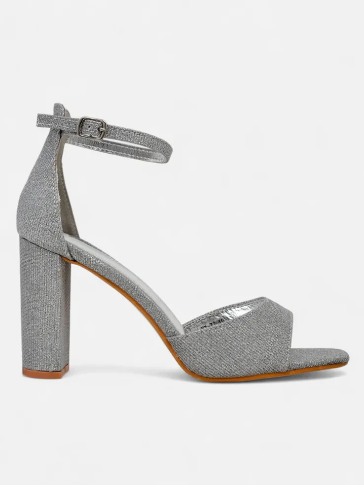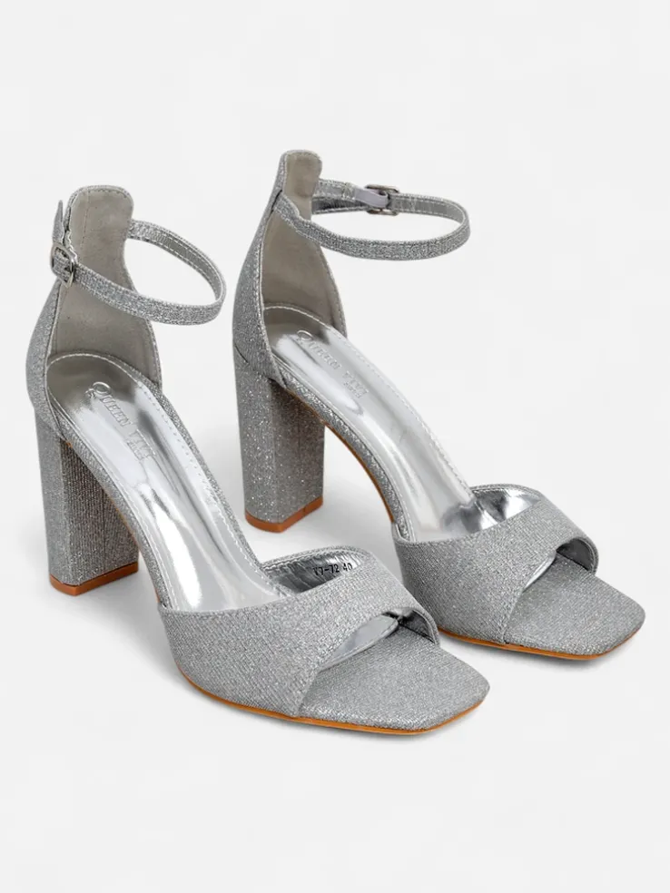 - Damskie sandałki na słupku – to idealny pomysł na gorące letnie dni. Model wykonany z tkaniny z brokatem i eko skórzanej wkładki. Obuwie zapinane na sprzączkę. Połączenie stylu i wygody!