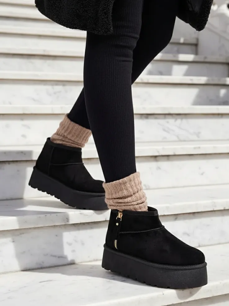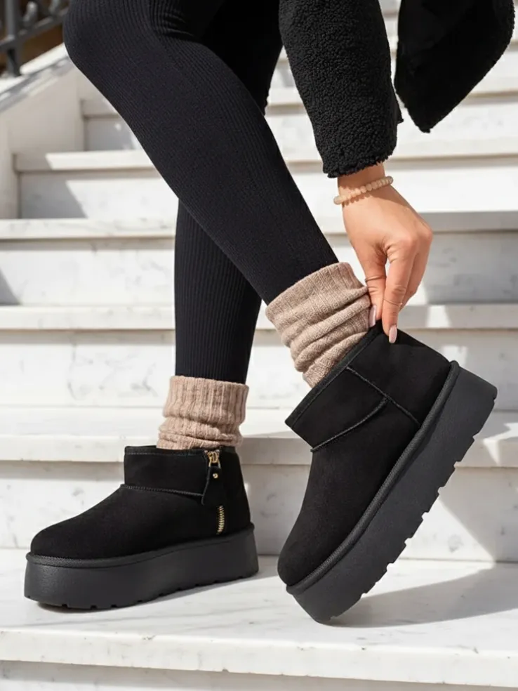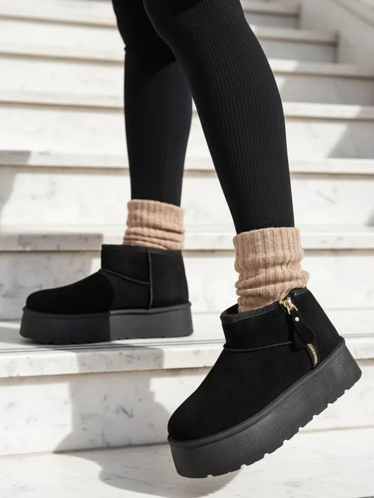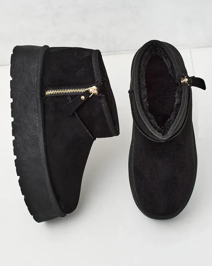- Świetne damskie zimowe buty typu śniegowce na platformie. Cholewka wykonana jest ze skóry ekologicznej zamszowej, środek ocieplony futerkiem. Model posiada ozdobny suwak. Idealna baza na zimę!